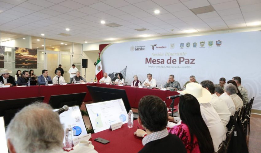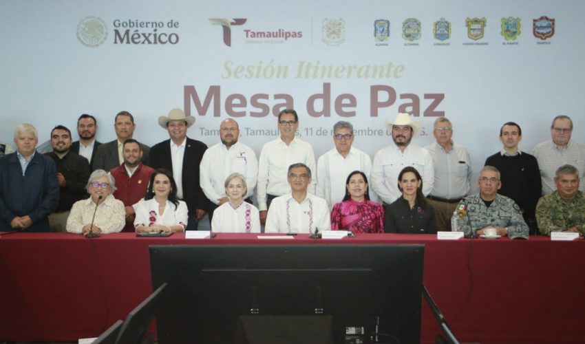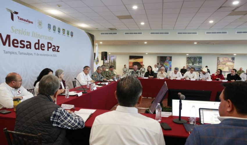 Al presidir la sesión itinerante de la Mesa de Paz, acompañado por la presidenta del Sistema DIF Estatal, doctora María de Villarreal, en las instalaciones de la Expo Tampico, en donde también asistieron integrantes de la Mesa Ciudadana de Seguridad y Justicia, el mandatario estatal expresó que esta reunión de trabajo es un ejemplo de la unión y participación que se tiene en Tamaulipas para lograr mejores oportunidades y tiempos de solución de los problemas.