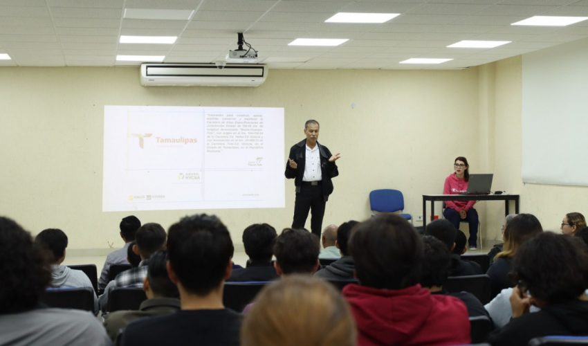 Ciudad Victoria, Tamaulipas. – La Secretaría de Obras Públicas (SOP) del Gobierno del Estado impartió una conferencia magistral sobre el proceso de construcción de la carretera Mante-Ocampo-Tula (MOT) a estudiantes del Instituto Tecnológico de Ciudad Victoria, con el propósito de fortalecer la formación académica de las y los futuros profesionales de la ingeniería.