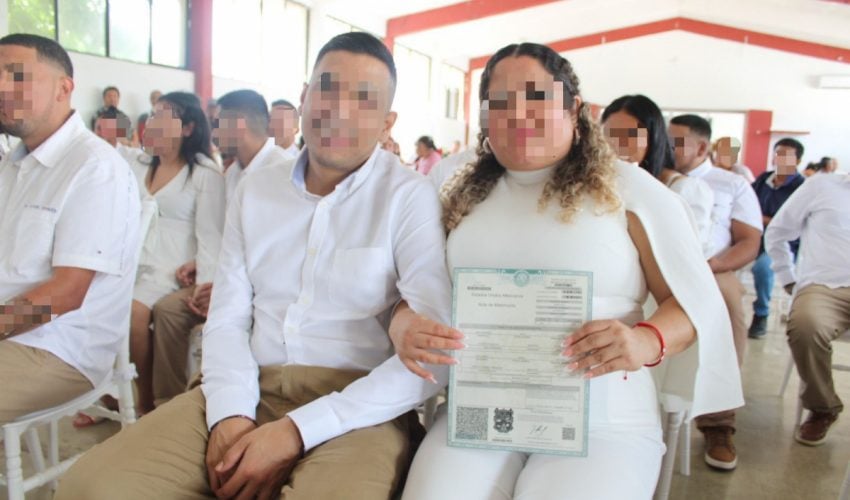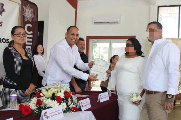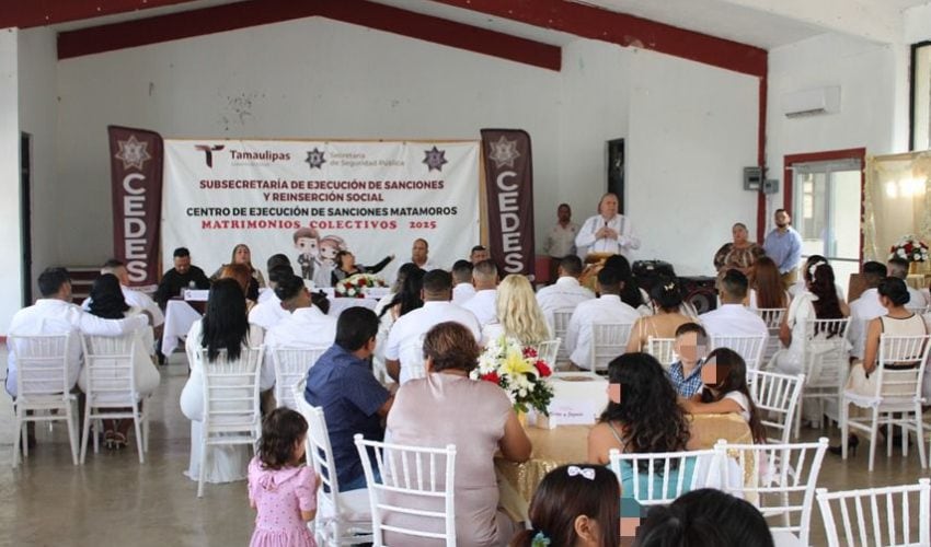 Matamoros, Tamaulipas.- En un ambiente de respeto y compromiso, 15 hombres y tres mujeres que residen en el Centro de Ejecución de Sanciones (CEDES) del municipio de Matamoros formalizaron su unión a través de la Campaña de Matrimonios Colectivos 2025 organizada por el Sistema DIF.