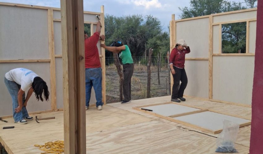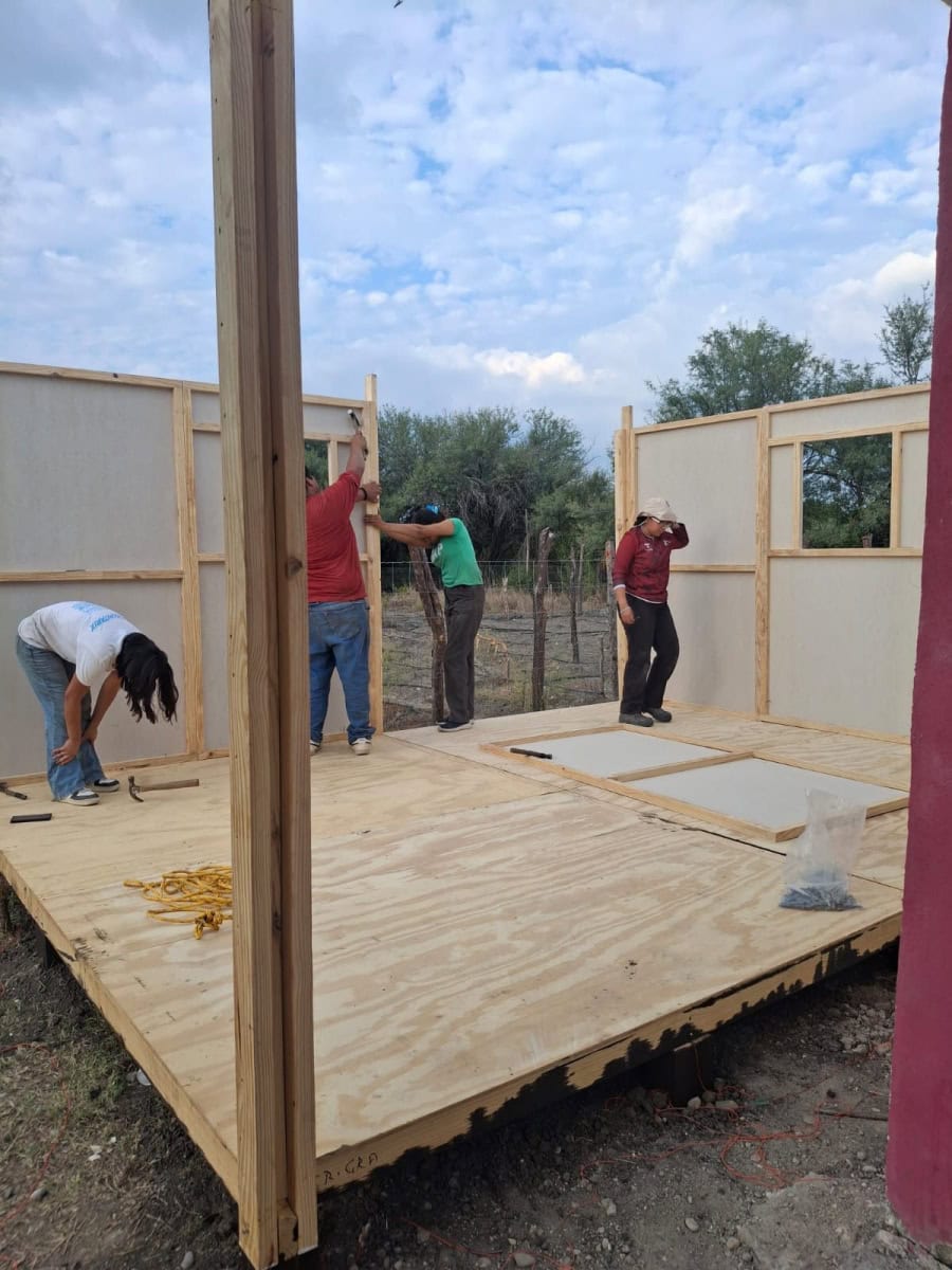 Como parte de estas acciones, se llevó a cabo la construcción de 14 viviendas emergentes con la finalidad de contribuir al patrimonio sustentable entre los habitantes de los ejidos Praxedis Balboa y Lázaro Cárdenas del municipio de Villa de Casas.