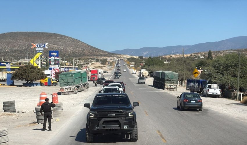 En ese punto, la caravana fue recibida por autoridades de la Fuerza Civil del estado de San Luis Potosí y la Guardia Nacional, quienes continuaron con el acompañamiento en la entidad vecina.