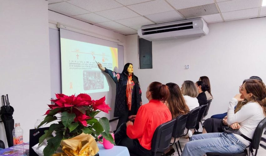 La ponencia se realizó en el marco de los 16 Días de Activismo para la Eliminación de la Violencia contra las Mujeres, con el propósito de promover la sensibilización, identificación de factores de riesgo y acciones preventivas que contribuyan a erradicar la violencia de género, mencionó Marcia Benavides Villafranca, directora general del instituto.