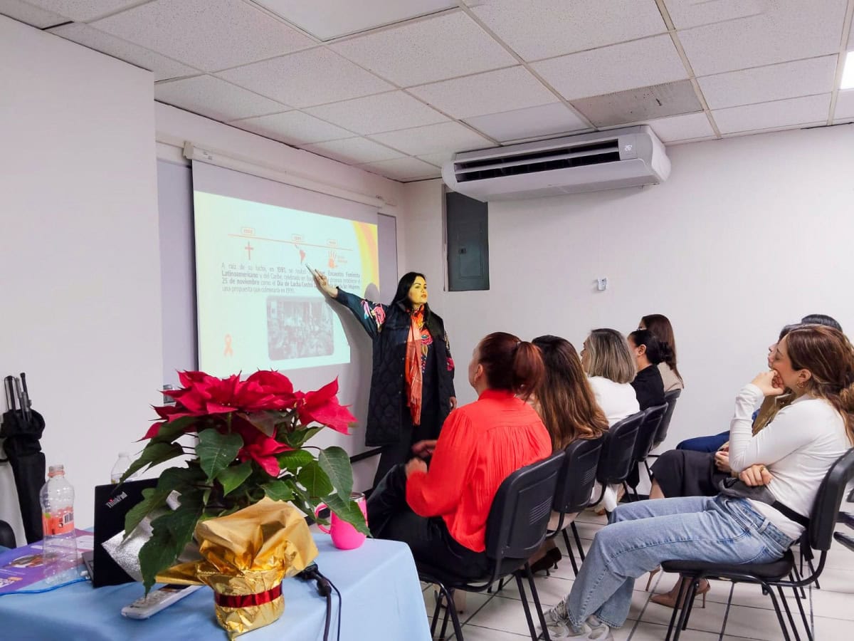 La ponencia se realizó en el marco de los 16 Días de Activismo para la Eliminación de la Violencia contra las Mujeres, con el propósito de promover la sensibilización, identificación de factores de riesgo y acciones preventivas que contribuyan a erradicar la violencia de género, mencionó Marcia Benavides Villafranca, directora general del instituto.