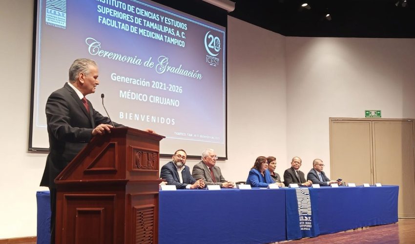 Tampico, Tamaulipas. – “Somos testigos de nuevas generaciones que por amor a la vida hoy se convierten en doctores y doctoras comprometidos con la salud de las personas, capaces de enfrentar y superar cualquier reto”, señaló el secretario de Salud, Vicente Joel Hernández Navarro, al asistir a la ceremonia de graduación de la generación 2021-2026 de la carrera de médico cirujano del Instituto de Ciencias y Estudios Superiores de Tamaulipas. A.C, de Tampico.