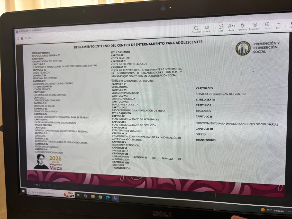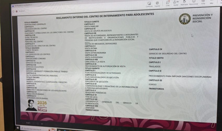 Güémez, Tamaulipas.- Con el objetivo de contar con un Reglamento Interno para los Centros Regionales de Ejecución de Medidas para Adolescentes, personal de la Secretaría de Seguridad Pública de Tamaulipas (SSPT) asistió a la reunión virtual denominada “Instrumentos Normativos”, convocada por la Dirección Técnica Responsable del Sistema Integral de Justicia Penal para Adolescentes.
