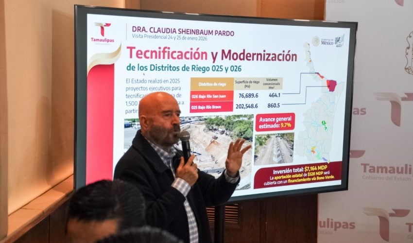 Estas acciones permitirán recuperar aproximadamente 260 millones de metros cúbicos de agua, los cuales serán destinados a garantizar el derecho humano al agua en la frontera tamaulipeca.