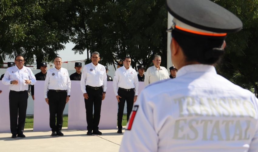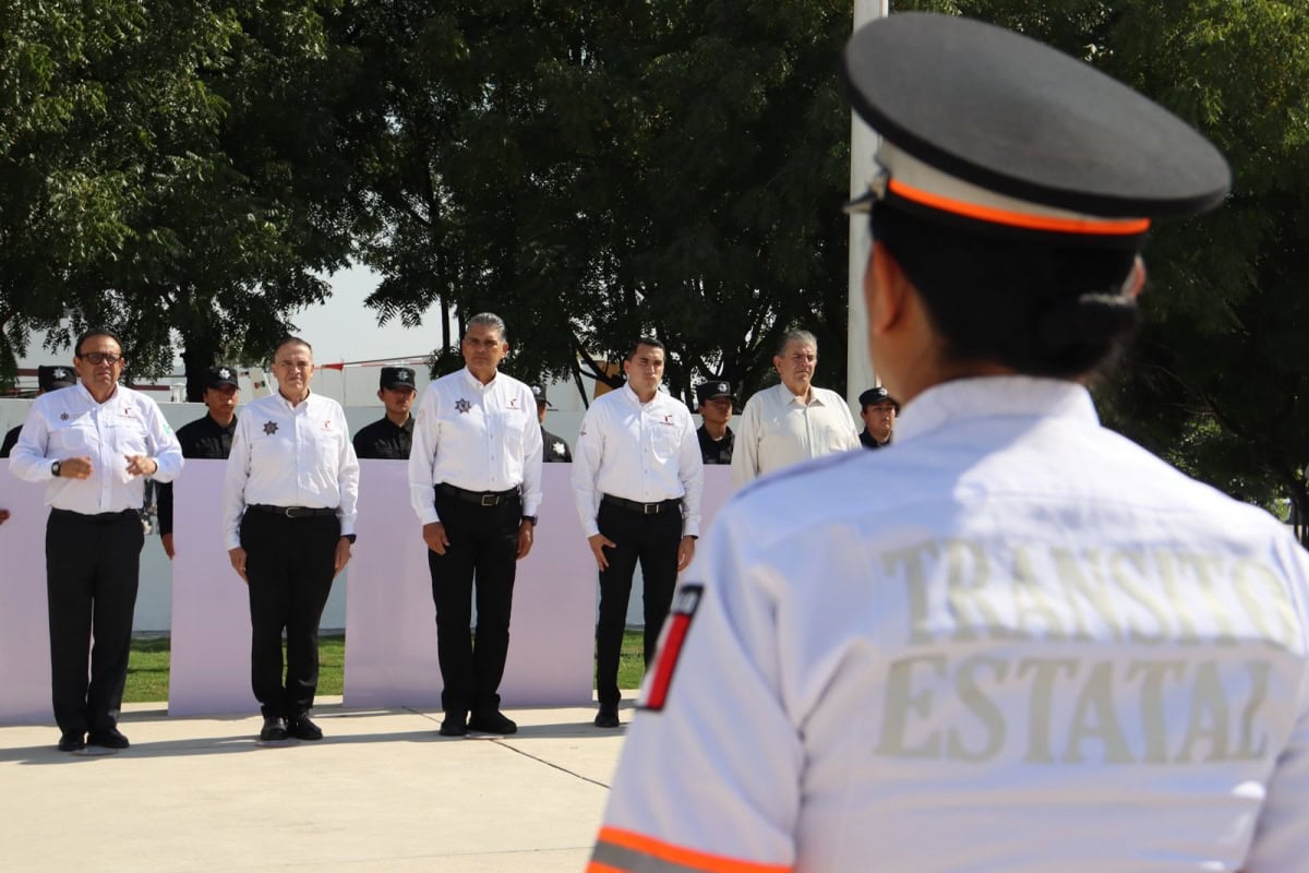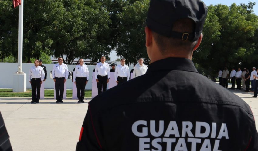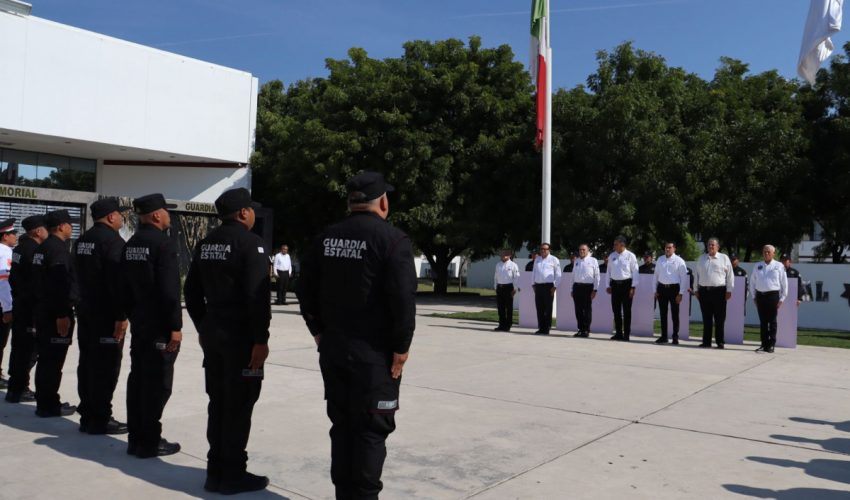 Acompañaron al secretario en la línea de honor, el subsecretario de Operaciones de la Guardia Estatal, Enrique Dena Salgado; el encargado del despacho de la Coordinación General de Administración, Ángel De León Yllades; el coordinador General de Operaciones, Arturo Alonso García De León; el encargado del despacho en Dirección del Consejo de Desarrollo Policial, Juan José Sesín Carpio; y el director de Agrupamientos Policiales, Carlos Gallegos Curiel.
