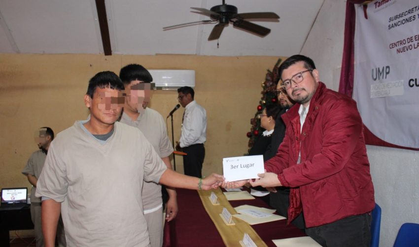 Nuevo Laredo, Tamaulipas.- El Centro de Ejecución de Sanciones (CEDES) del municipio de Nuevo Laredo entregó reconocimientos a las personas privadas de la libertad (PPLs) que participaron en un concurso interno de artes visuales y premios económicos a quienes obtuvieron los primeros lugares.