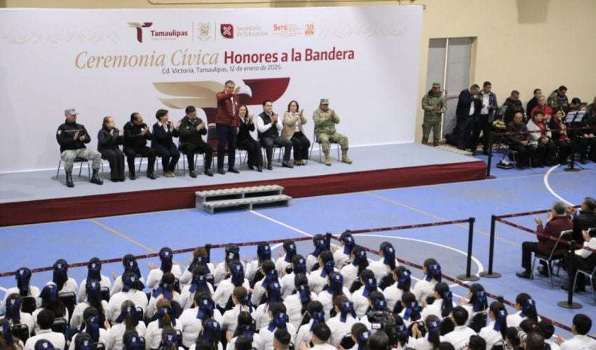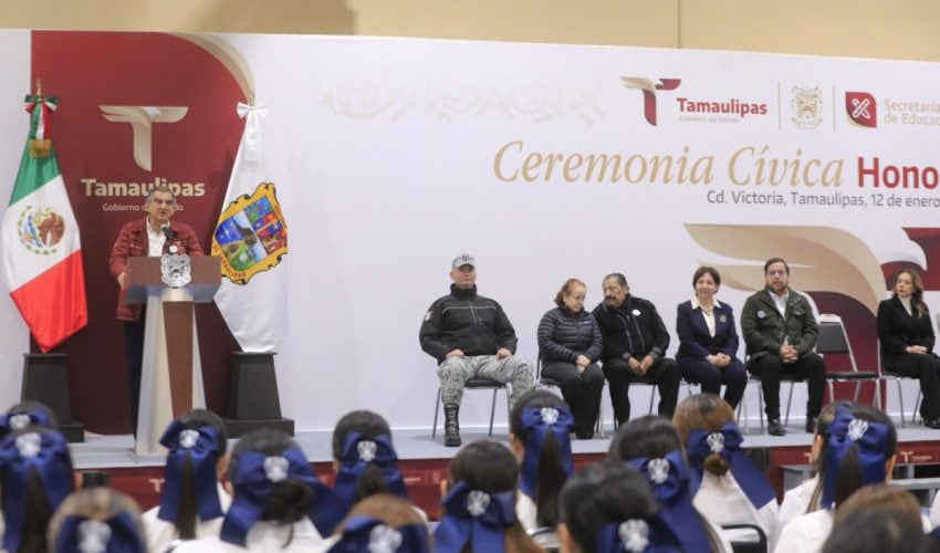 Ciudad Victoria, Tamaulipas.– El gobernador de Tamaulipas, Américo Villarreal Anaya resaltó el papel trascendental de la educación y del magisterio en la formación de una sociedad más humana, justa y con visión de futuro, al presidir la Ceremonia de Honores a la Bandera en la Benemérita Escuela Normal Federalizada de Tamaulipas.
