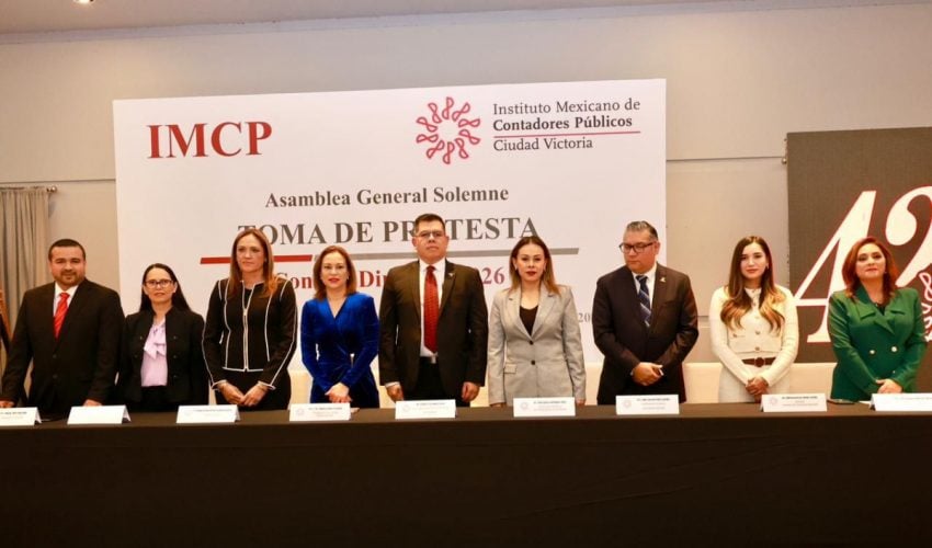 Ciudad Victoria, Tamaulipas.- En representación del gobernador del Estado, Américo Villarreal Anaya, y del secretario de Finanzas, Carlos Irán Ramírez González, el subsecretario de Inversión, Entidades y Fideicomisos, Jonatan Romero Vásquez, acudió a la Asamblea General Solemne 2026 del Instituto Mexicano de Contadores Públicos de Ciudad Victoria, en la que se llevó a cabo la toma de protesta del Consejo Directivo entrante.