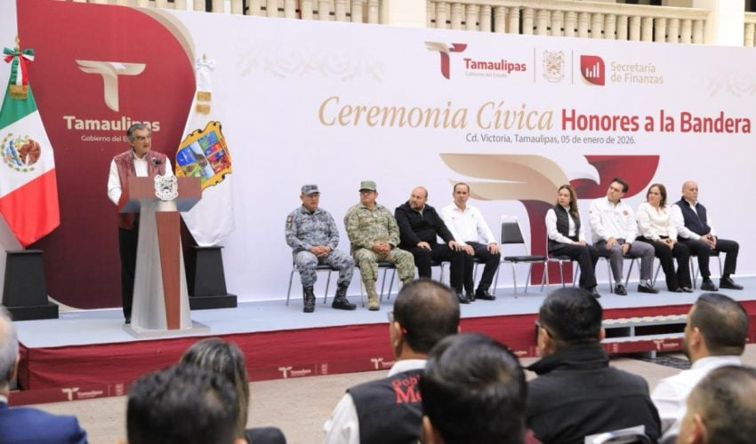 Al presidir la primera ceremonia cívica de honores del año nuevo, en la explanada de Palacio de Gobierno, el jefe del Ejecutivo estatal destacó que en Tamaulipas existen condiciones favorables para continuar nuestra transformación, aun frente a un entorno internacional en el que diferencias y divisiones políticas antagónicas han sembrado discordia e incertidumbre, generando hostilidades que han rebasado el terreno de la diplomacia, causando sufrimientos a millones de personas y familias que son arrastradas a conflictos de orden geopolítico, contrarios al derecho, a la razón y a la empatía que debe existir entre semejantes.