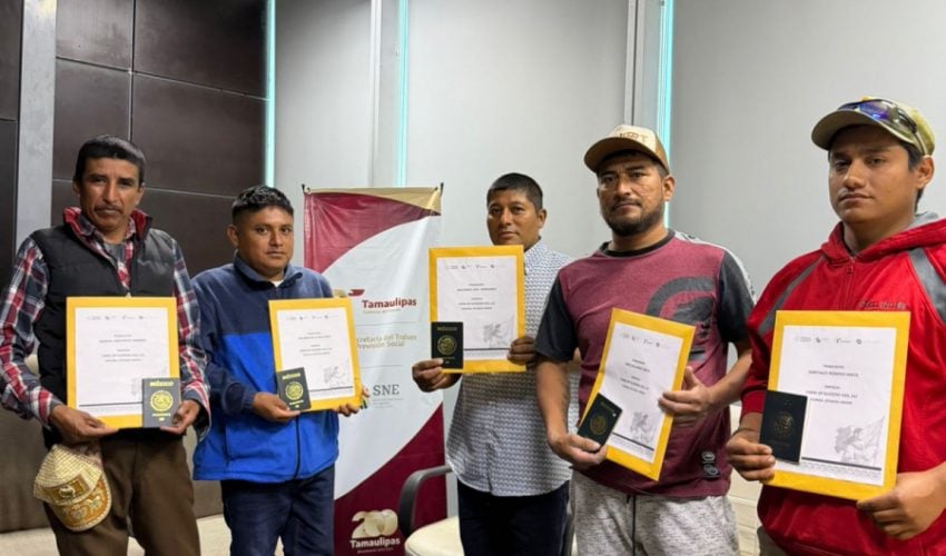 En esta ocasión, se realizó la entrega de sobres de viaje a cinco trabajadores que desarrollarán actividades como jornaleros agrícolas en la cosecha de tomate en Estados Unidos; ellos son originarios de los municipios de Llera, Tula e Hidalgo.