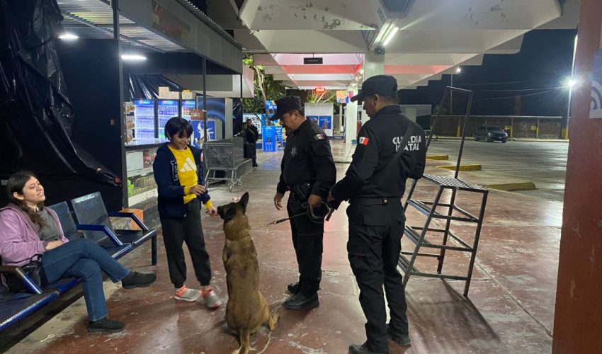 Guardia Estatal refuerza vigilancia con binomios caninos en la Central de Autobuses de Victoria