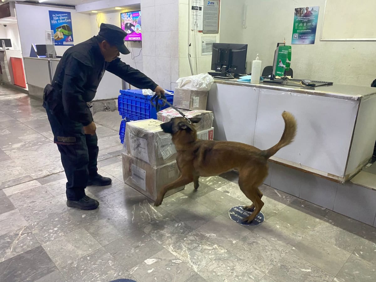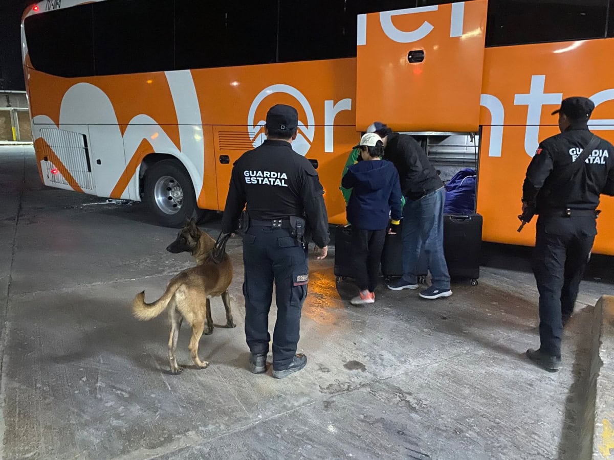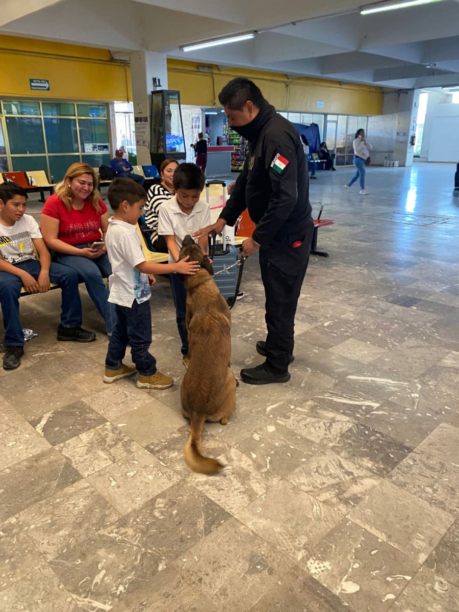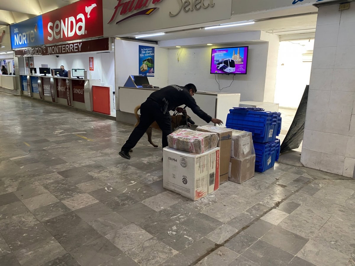 Guardia Estatal refuerza vigilancia con binomios caninos en la Central de Autobuses de Victoria