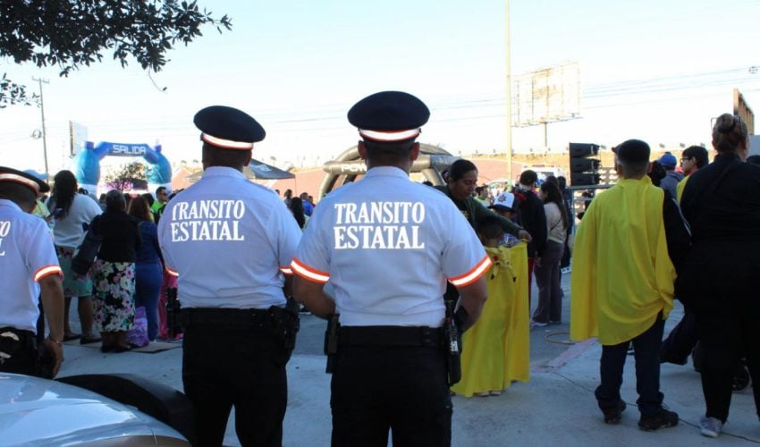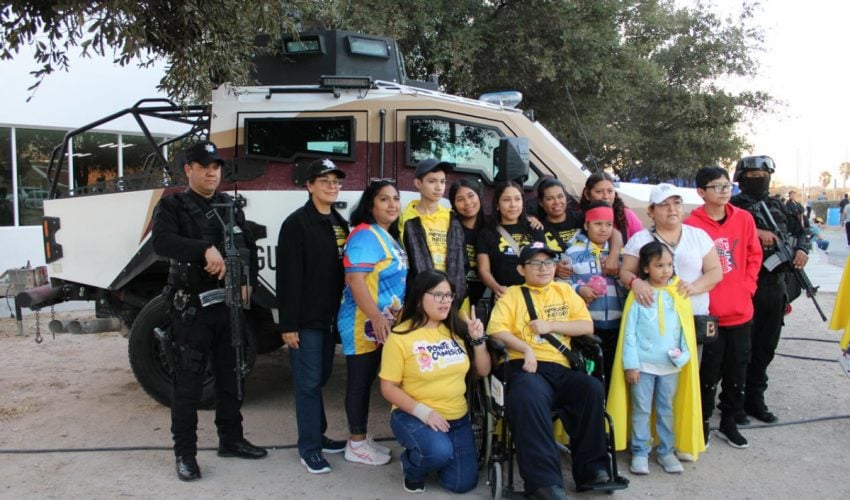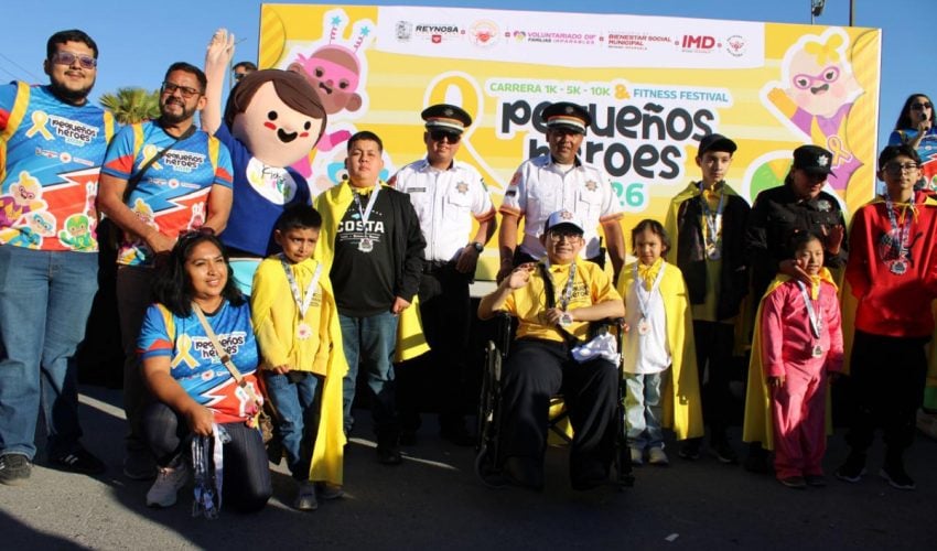 Reynosa, Tamaulipas.- En el marco del Día Internacional contra el Cáncer Infantil, personal de la Guardia Estatal y Dirección de Tránsito Estatal de la Secretaría de Seguridad Pública de Tamaulipas (SSPT) convivieron con familias reynosenses en la carrera “Pequeños Héroes” 2026.