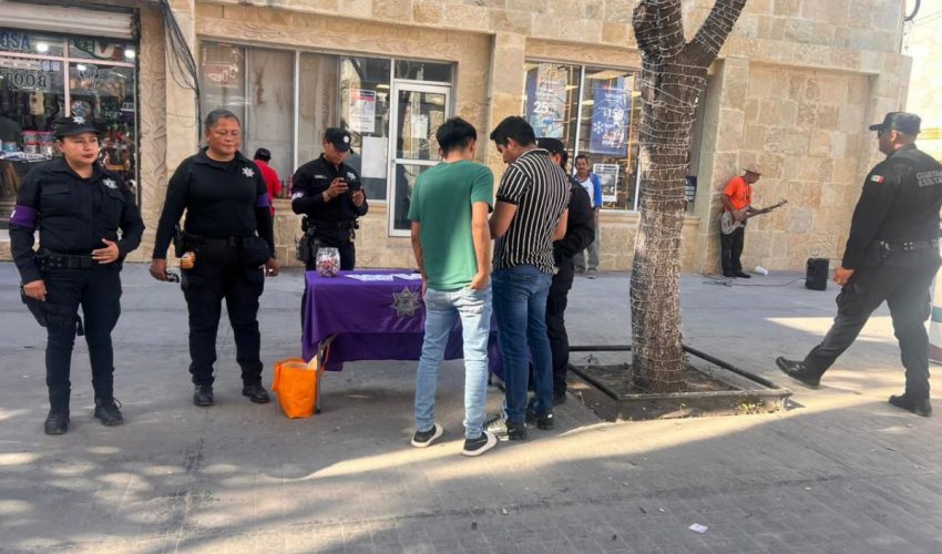 Estas acciones se reforzaron con la entrega de trípticos y violentómetros, así como los recorridos a pie tierra para preservar la seguridad en el primer cuadro de la ciudad.