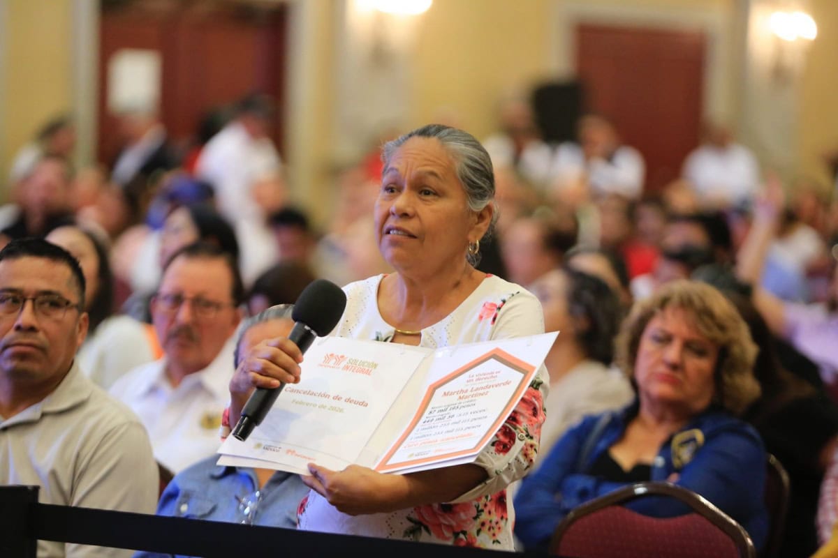 Durante la asamblea, el director de Infonavit también presentó casos de éxito de trabajadores y trabajadoras, algunos de ellos presentes en el evento, que se beneficiaron con la reestructuración de sus créditos que estaban considerados como «impagables» y la liberación gratuita de hipotecas.