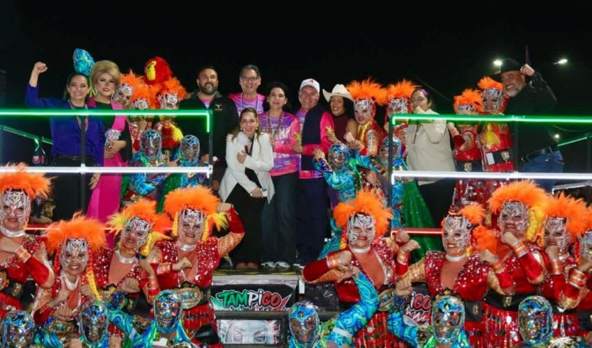 El secretario de Turismo, Benjamín Hernández Rodríguez, junto a la presidenta municipal de Tampico, Mónica Villarreal Anaya y los alcaldes de Madero, Erasmo González Robledo y Altamira, Armando Martínez Manríquez, se unieron a la fiesta entre carros alegóricos, comparsas vibrantes, disfraces espectaculares y grupos de animación.