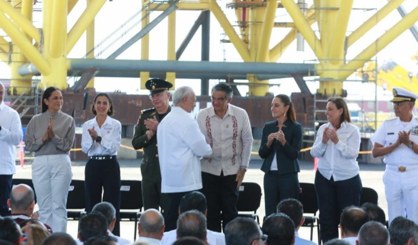Durante el evento celebrado en el Patio Industrial de Pueblo Viejo, Veracruz, y junto a la gobernadora anfitriona Rocío Nahle García, al pie de las nuevas plataformas petroleras marinas construidas por Petróleos Mexicanos, la presidenta Claudia Sheinbaum destacó la presencia de Américo Villarreal, a quien consideró «un hombre nacionalista y visionario».