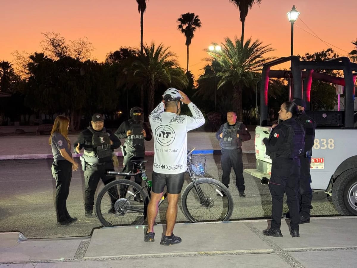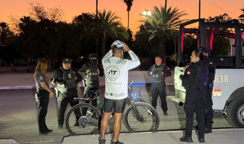 El ciclista cuenta con el acompañamiento permanente de elementos de la Guardia Estatal, quienes brindan seguridad y resguardo durante el recorrido carretero y su participación en eventos municipales, con el objetivo de garantizar que la rodada se realice de manera segura.