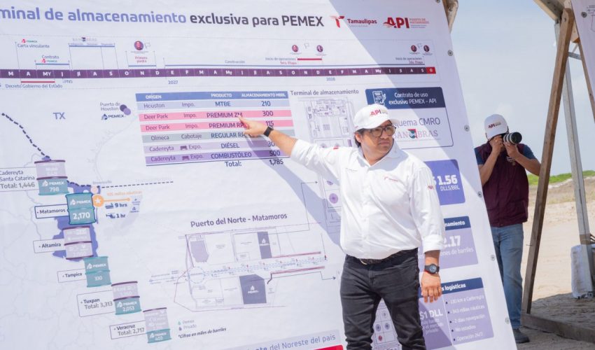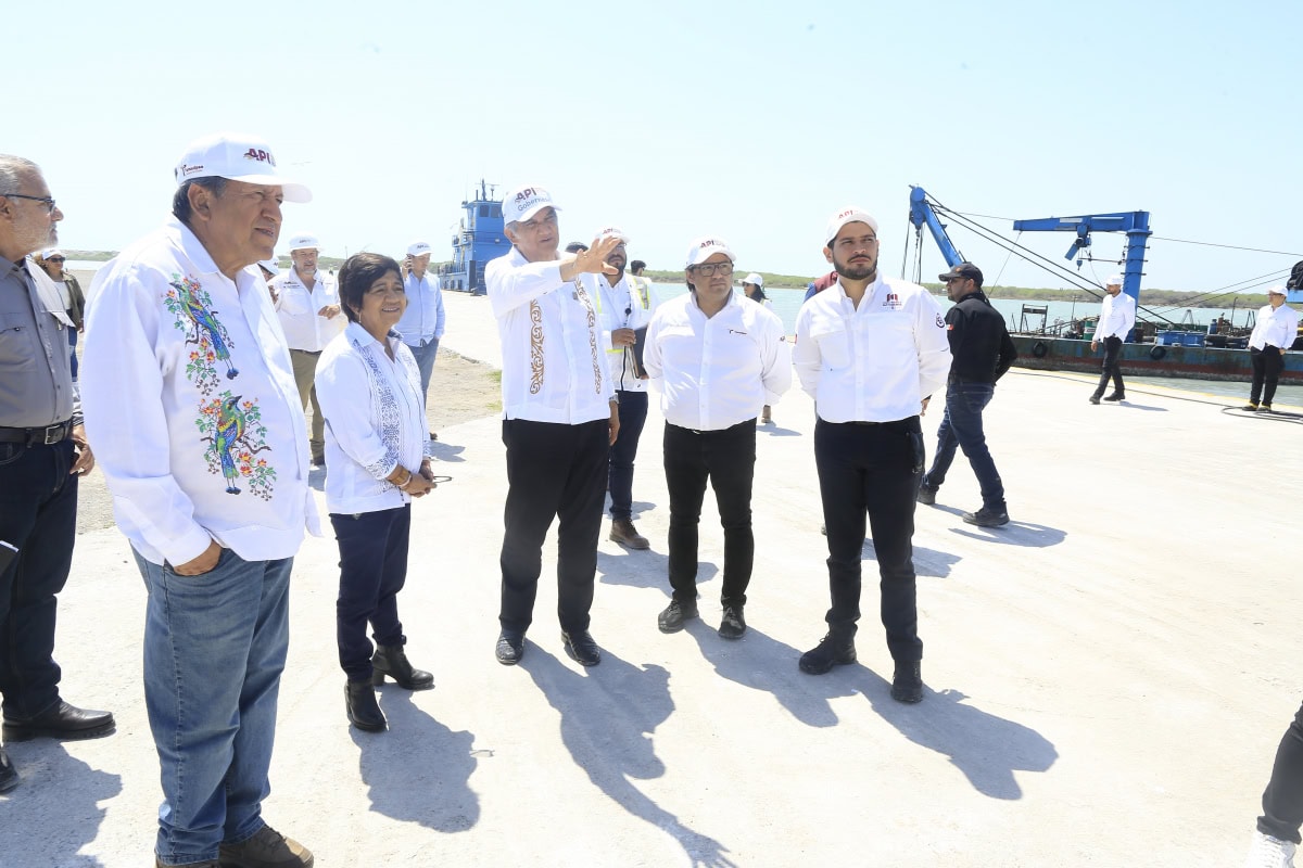 En el recorrido por las instalaciones de la Administración Portuaria Integral, escuchó la explicación por parte del director general de la API Tamaulipas, Gustavo Guzmán Fernández, quien en primer término expuso los trabajos que se realizan para la instalación de un tanque de almacenamiento de agua de gran capacidad, así como el avance de la construcción de la barda perimetral del recinto portuario.
