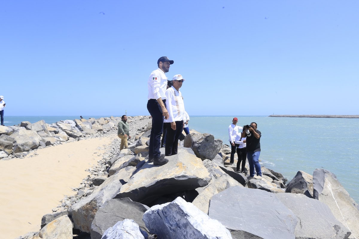 El gobernador y la titular de la Sedatu, junto con el director general de la Comisión Nacional de Vivienda, Rodrigo Chávez Contreras llegaron hasta la zona de las escolleras, donde apreciaron el canal de navegación y conocieron la zona para el desarrollo de la Terminal de Almacenamiento de Pemex, que se convertiría en la más grande e importante del noreste de México.