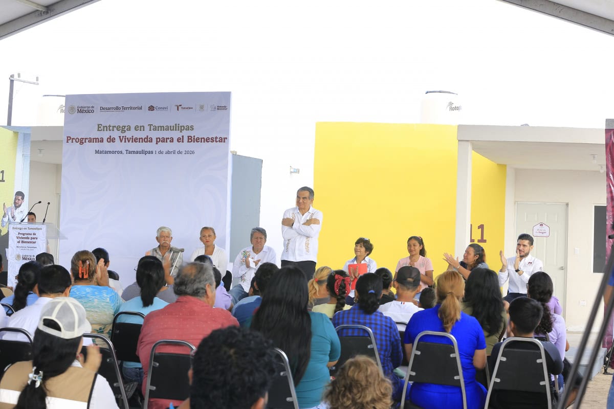 Matamoros, Tamaulipas.-  Tamaulipas refrendó su liderazgo nacional en el programa de Vivienda para el Bienestar, al entregar en el desarrollo habitacional El Mezquital, 19 casas nuevas construidas por la Comisión Nacional de Vivienda para familias de pescadores, en un evento encabezado por la presidenta Claudia Sheinbaum, en enlace virtual con el gobernador Américo Villarreal Anaya.