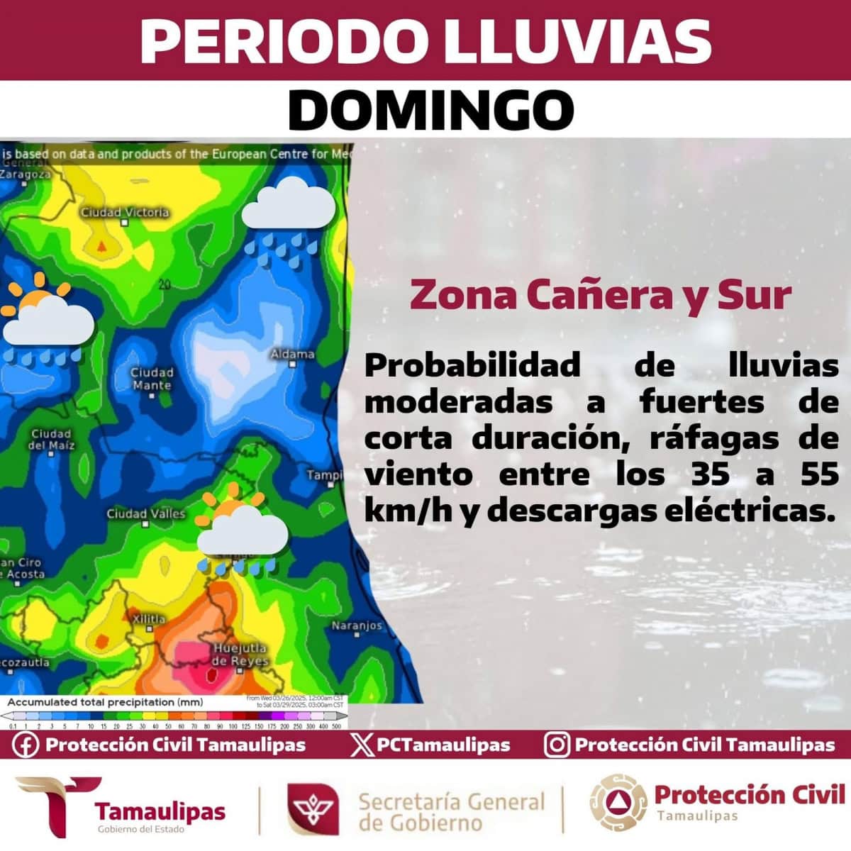 Para emergencias, comunicarse al 911 o al número de Protección Civil Estatal: (834) 171 92 97.