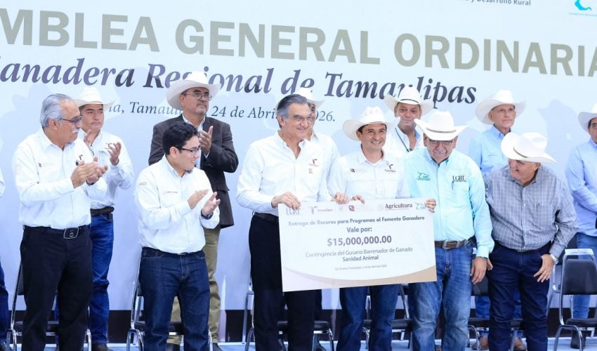 Al presidir la clausura de la LXXXIX Asamblea General Ordinaria de la Unión Ganadera Regional de Tamaulipas, acompañado por Francisco Javier Calderón Elizalde, director en jefe del SENASICA, y Homero García de la Llata, presidente de la Confederación Nacional de Organizaciones Ganaderas, el gobernador destacó que gracias al trabajo conjunto entre el Gobierno del Estado y el sector ganadero, se han adoptado medidas que incluso han sido reconocidas por autoridades norteamericanas para afrontar la contingencia del gusano barrenador del ganado.