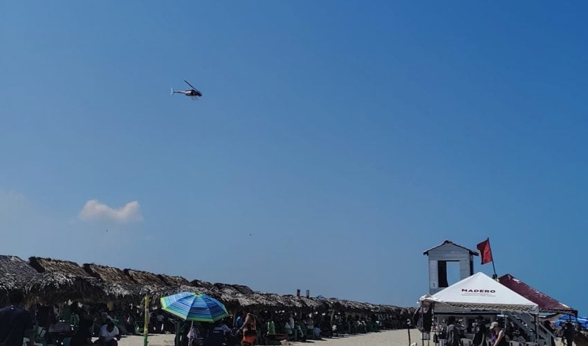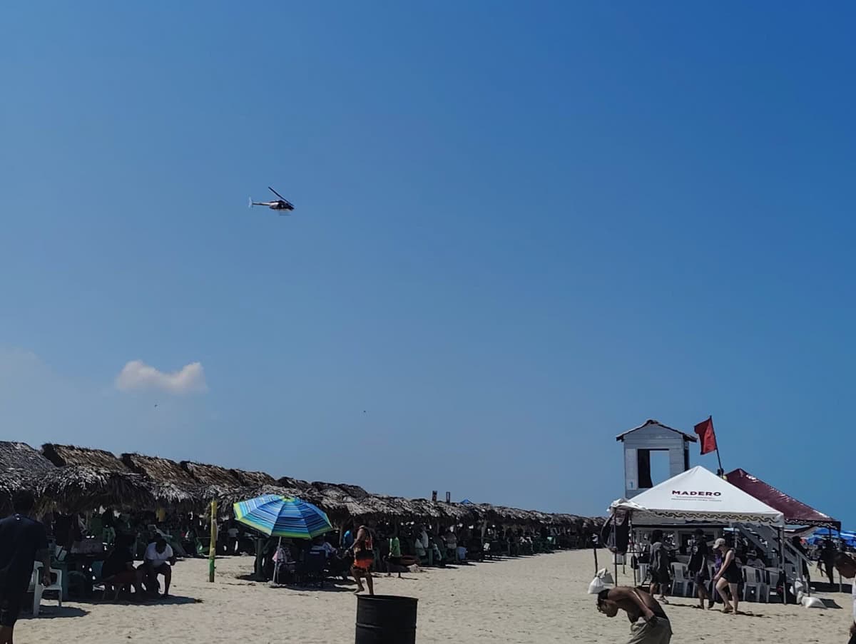 Ciudad Madero, Tamaulipas.- Al ser la Playa Miramar uno de los destinos más visitados durante el periodo vacacional Semana Santa 2026, el Agrupamiento Aéreo de la Guardia Estatal mantiene vigilancia permanente.