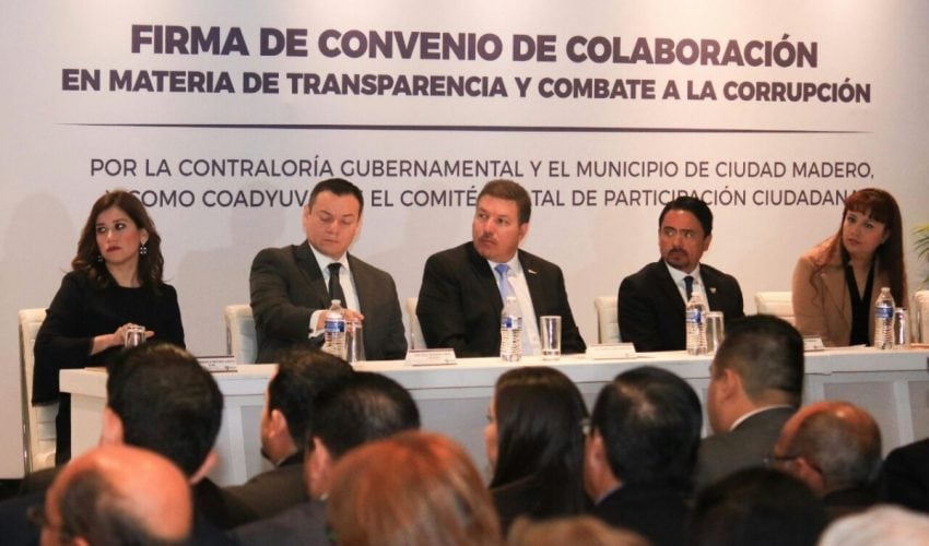 Firma de Convenio de Colaboración entre la Contraloría Gubernamental, Municipio de Cd. Madero y, como coadyuvante, el Comité de Participación Ciudadana del Sistema Anticorrupción.