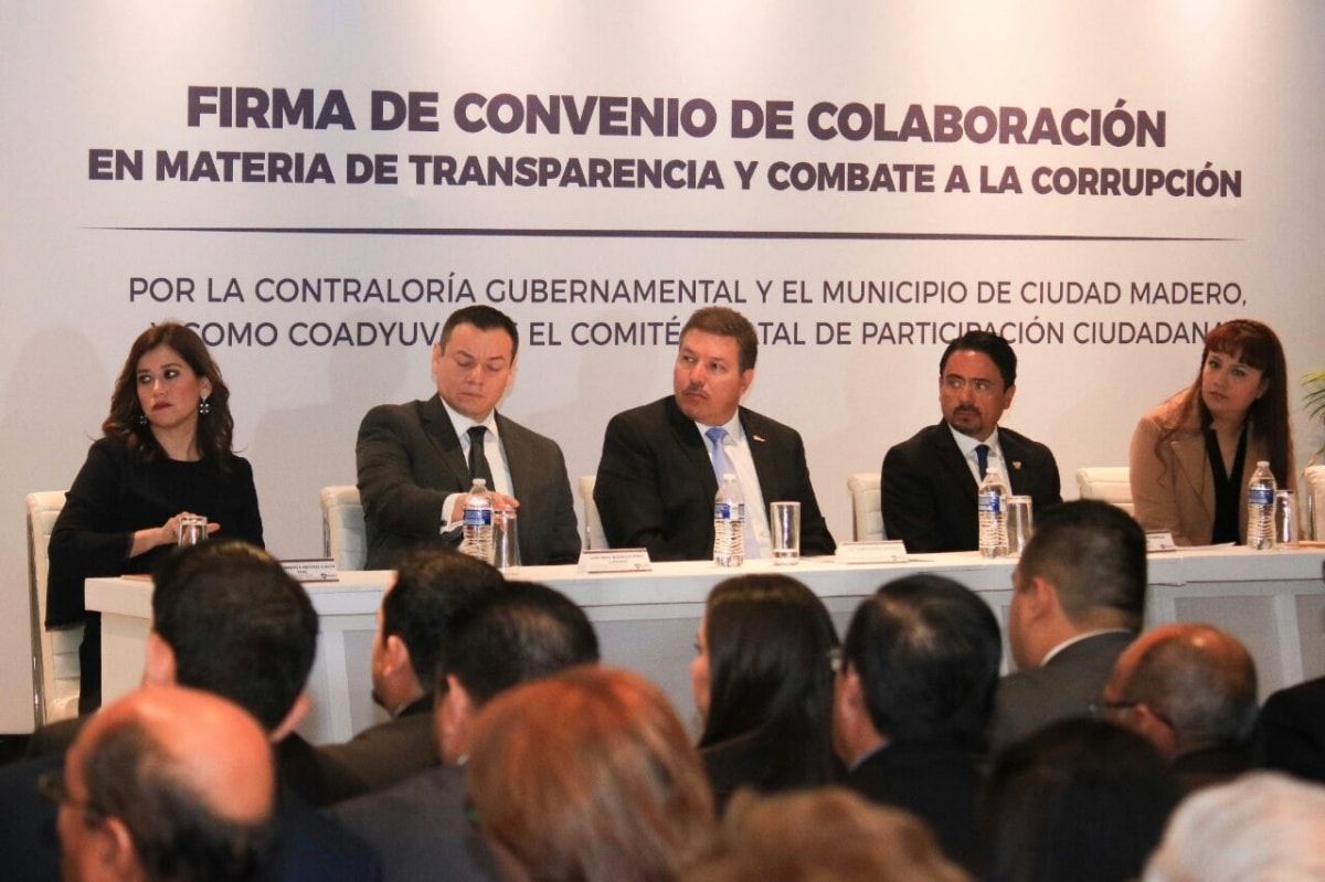 Firma de Convenio de Colaboración entre la Contraloría Gubernamental, Municipio de Cd. Madero y, como coadyuvante, el Comité de Participación Ciudadana del Sistema Anticorrupción.