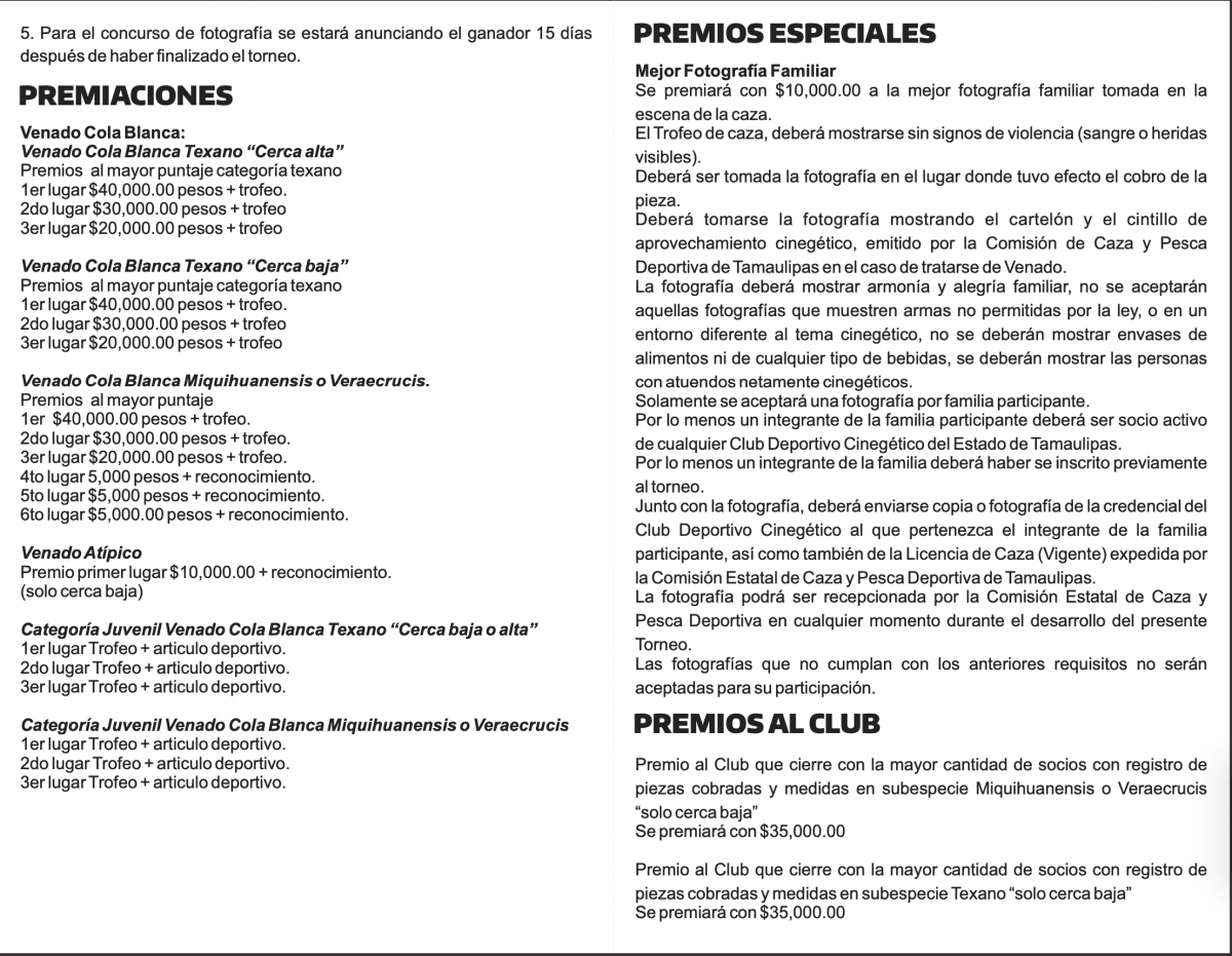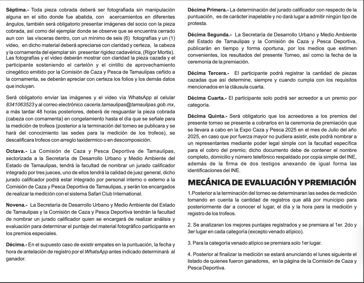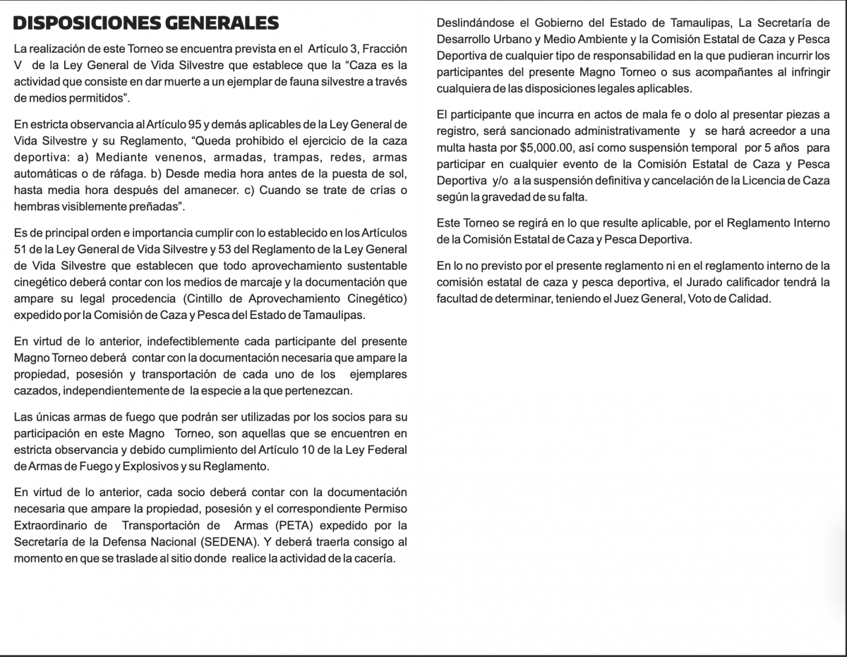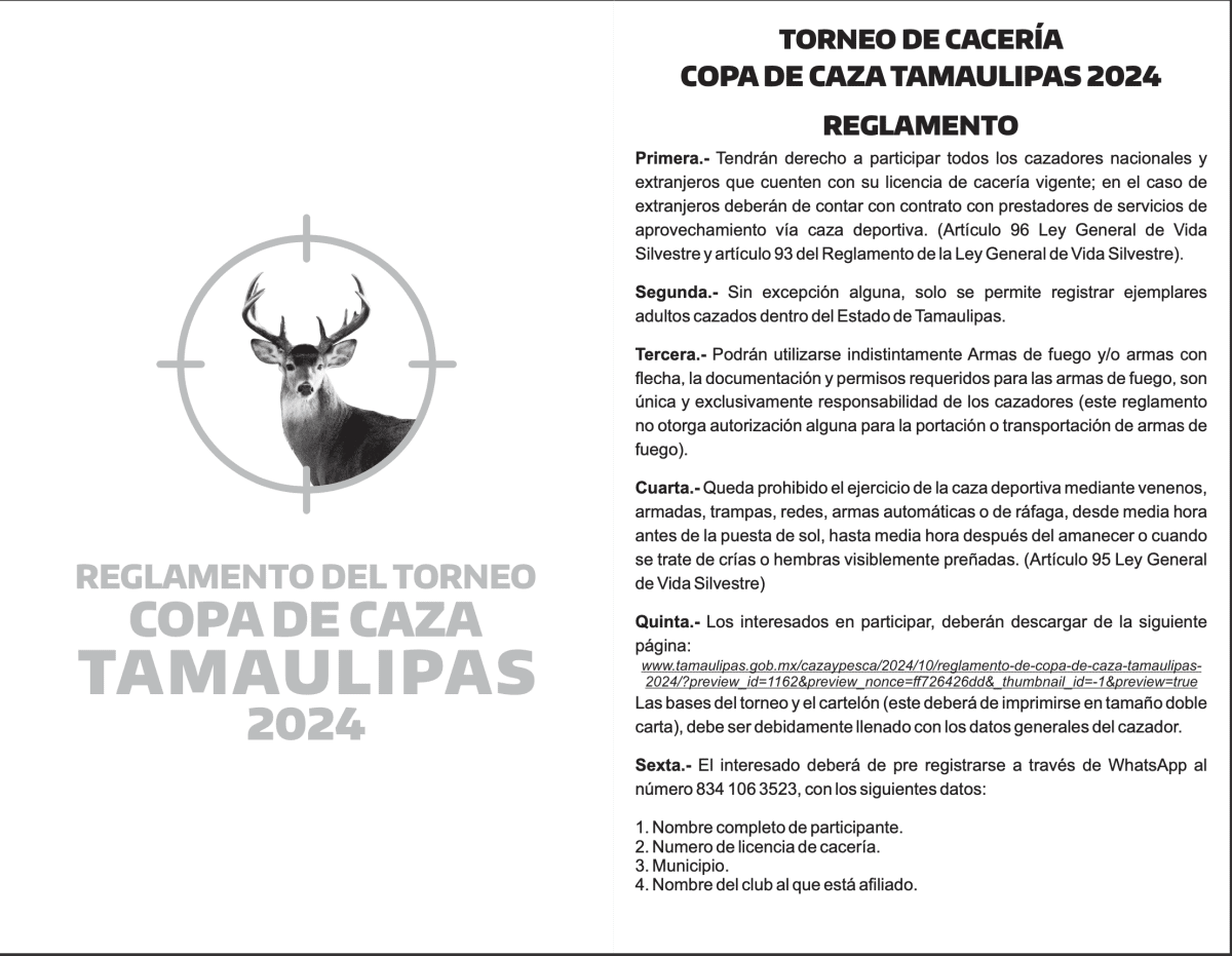 Reglamento de la Copa de Caza Tamaulipas 2024
