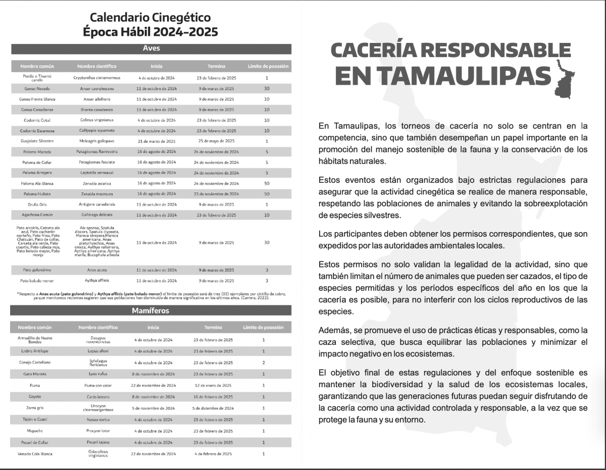 Cartelón de la Copa de Caza Tamaulipas 2024