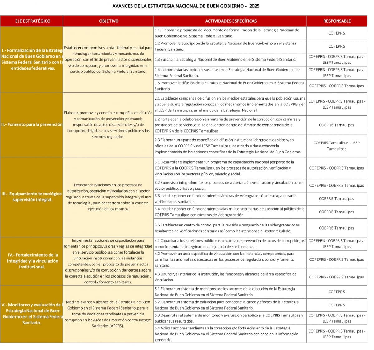 De esta manera, la COFEPRIS aborda la prevención del fenómeno de la corrupción en las APCRS por medio de la Estrategia Nacional de Buen Gobierno en el Sistema Federal Sanitario, a fin de fortalecer el correcto y adecuado cumplimiento del servicio público con acciones puntuales que contribuyan a la eficacia y eficiencia de las acciones de regulación, control y fomento sanitario a nivel nacional.