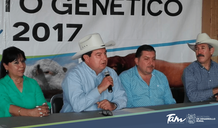 En representación del Gobernador del Estado, Francisco García Cabeza de Vaca y del Secretario de Desarrollo Rural, Ariel Longoria García acudió el Director de Fomento Pecuario, Romeo Flores Leal quien reiteró que el Ejecutivo Estatal refrenda su compromiso de apoyar a los pequeños y medianos productores para que en este año se beneficien con la adquisición de 2 mil 125 sementales bovinos, 600 caprinos y 100 ovinos, con una inversión de aproximadamente 36 millones de pesos para mejorar la genética de los hatos ganaderos.