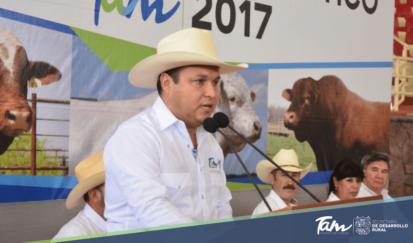 En representación del Gobernador y al hacer uso de la palabra, el Secretario de Desarrollo Rural, Ariel Longoria García destacó que es prioridad del Ejecutivo Estatal que la entidad siga manteniendo su genética y que el estado se consolide en este rubro, “para esto se cuenta con una inversión de más de 26 millones de pesos para todo el estado y donde apoyaremos al ganadero con el 50% del valor del semental.