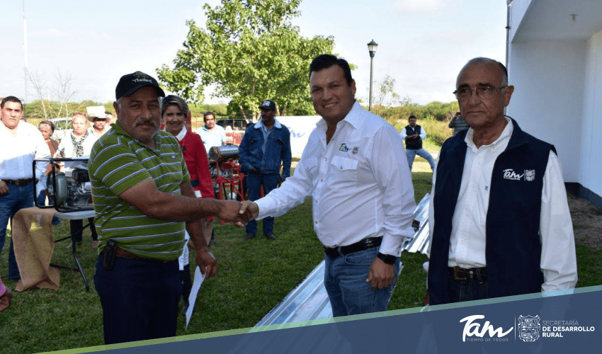 Ciudad Victoria, Tamaulipas.- Cumpliendo compromisos que habían sido solicitados ante el área de Atención Ciudadana del Gobernador Francisco García Cabeza de Vaca y del Sistema DIF Tamaulipas que preside la Sra. Mariana Gómez de García, el Secretario de Desarrollo Rural, Ariel Longoria García hizo entrega de motobombas, molinos, herramientas agrícolas y paquetes de cabras, puercos y aves, a pequeños productores de sector social.
