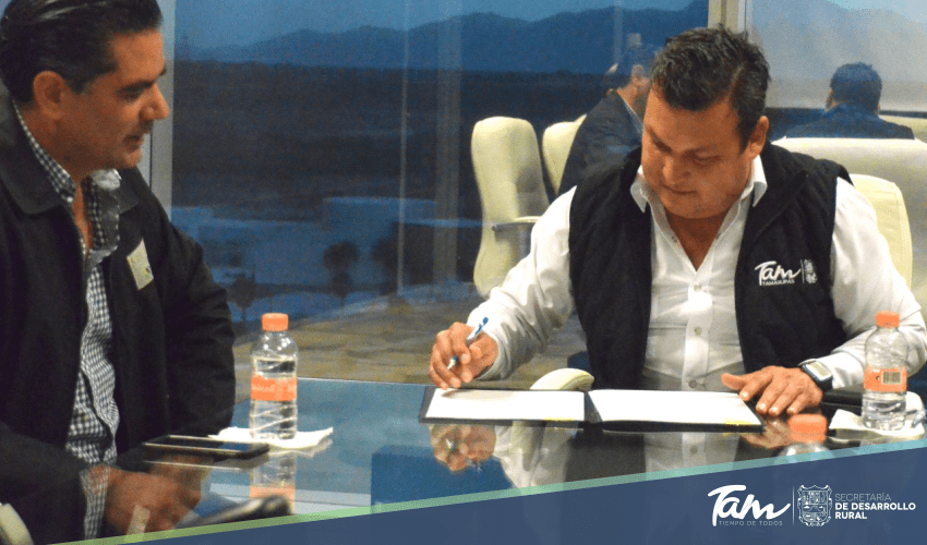 En la firma del documento estuvieron presentes Abel Gámez Cantú, Subsecretario de Desarrollo Pecuario y Forestal; Francisco Quintanilla Sosa, Subsecretario de Desarrollo Agrícola; Patricio Ramírez Garza, Director de PyMes Rurales; Humberto Vázquez Ramírez, Representante Estatal Fitosanitario y de Inocuidad Agropecuario y Acuícola de Tamaulipas, entre otros funcionarios.