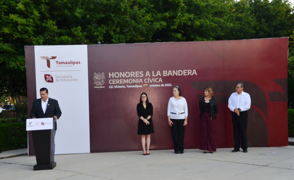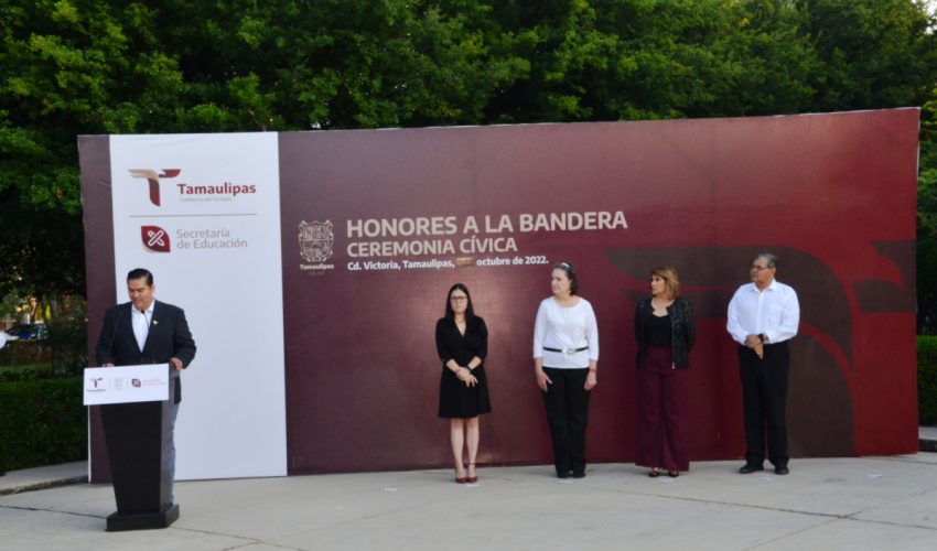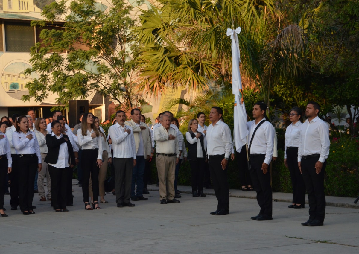 En el marco del ‘Día de la Organización de la Naciones Unidas’, el Lic. Hugo Armando Fonseca Reyes, titular de la Unidad Ejecutiva, dirigió la Ceremonia Cívica de Honores a nuestra Bandera, donde expresó que se está trabajando en la dignificación y revalorización de los maestros, y de contribuir desde las aulas a la construcción de la paz, a una sociedad más justa y democrática, con valores que fortalezcan una educación de calidad.