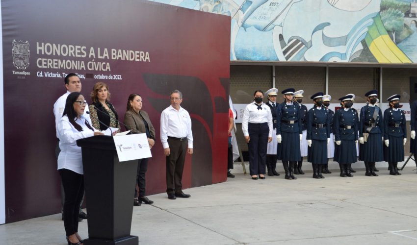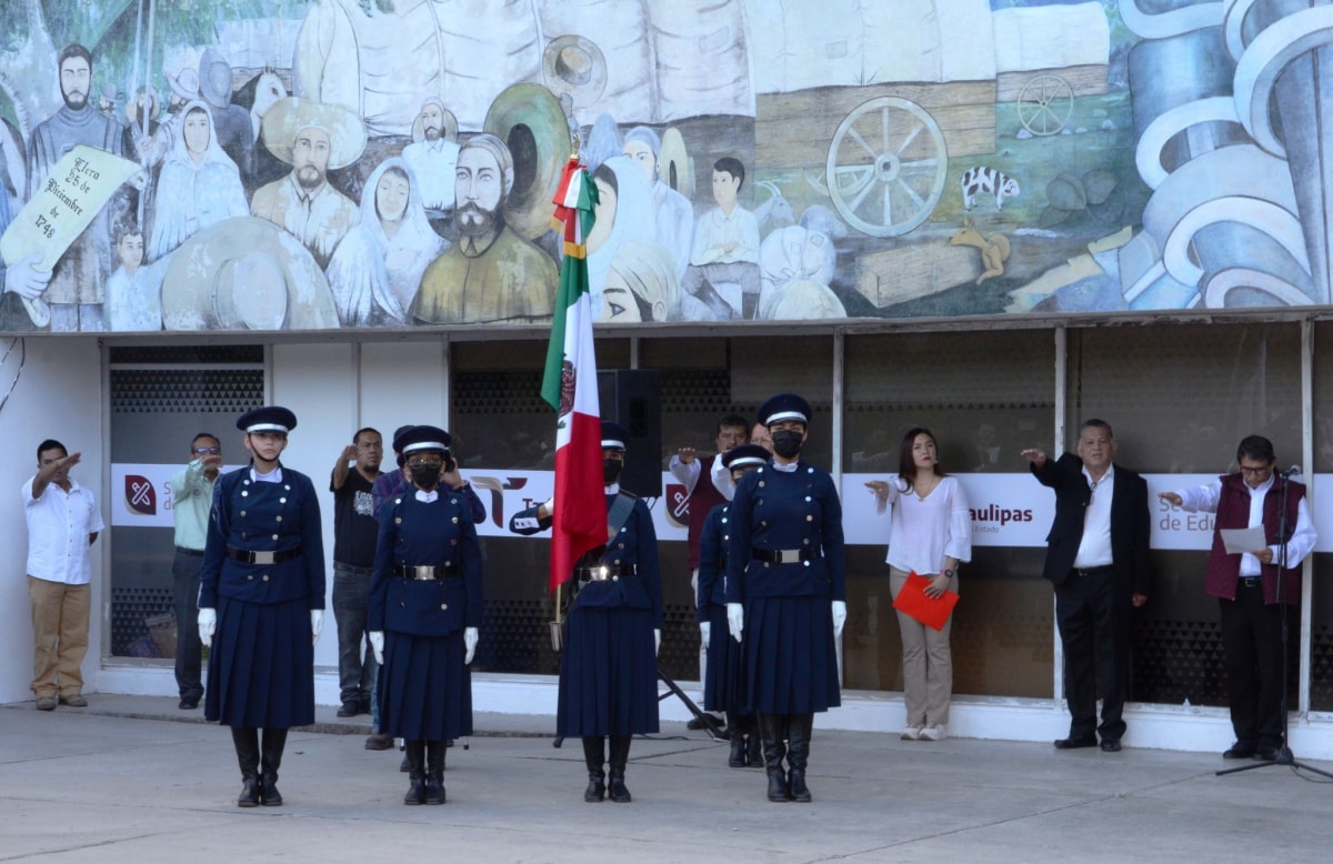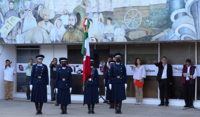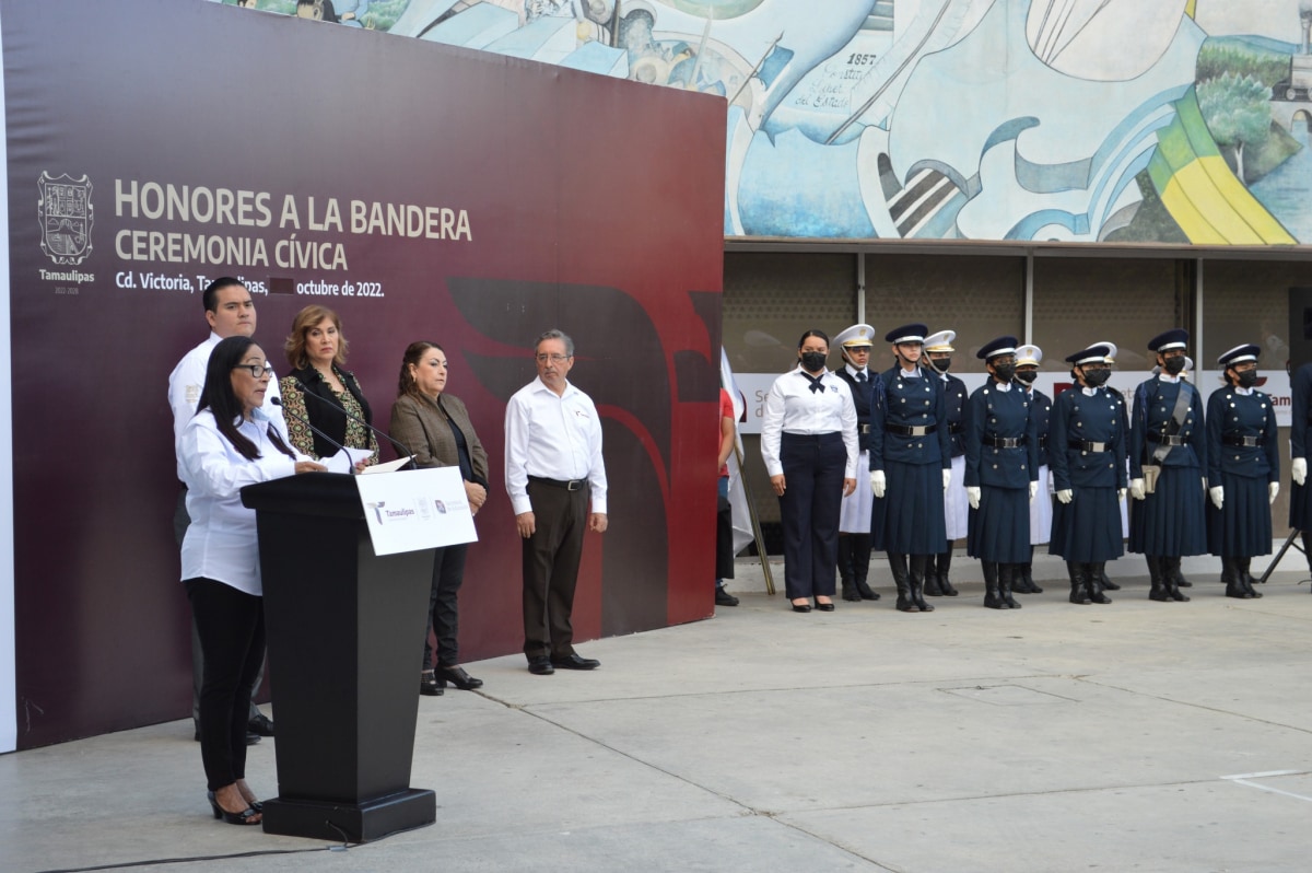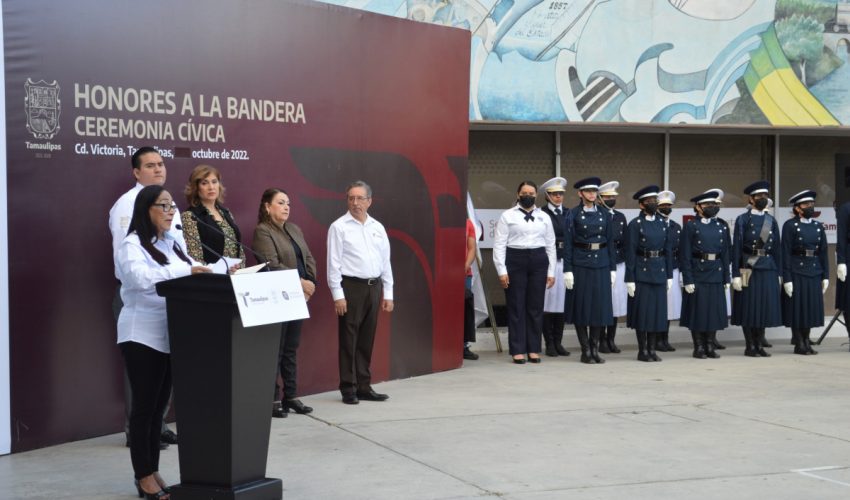 Se inició la semana con Ceremonia Cívica de Honores a nuestra Bandera, donde Ma. del Refugio Varela Reyes, subsecretaria de Planeación, reiteró el compromiso de la cuarta transformación hacia el sistema educativo, de lograr que Tamaulipas cuente con escuelas de excelencia para abatir la brecha de desigualdad y mantener la equidad.