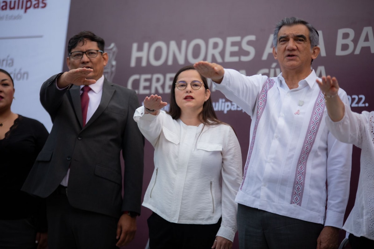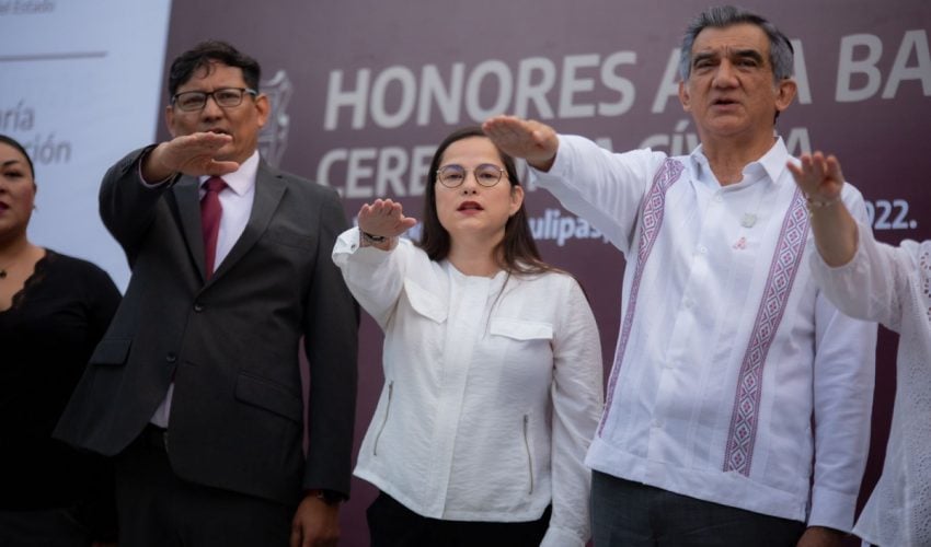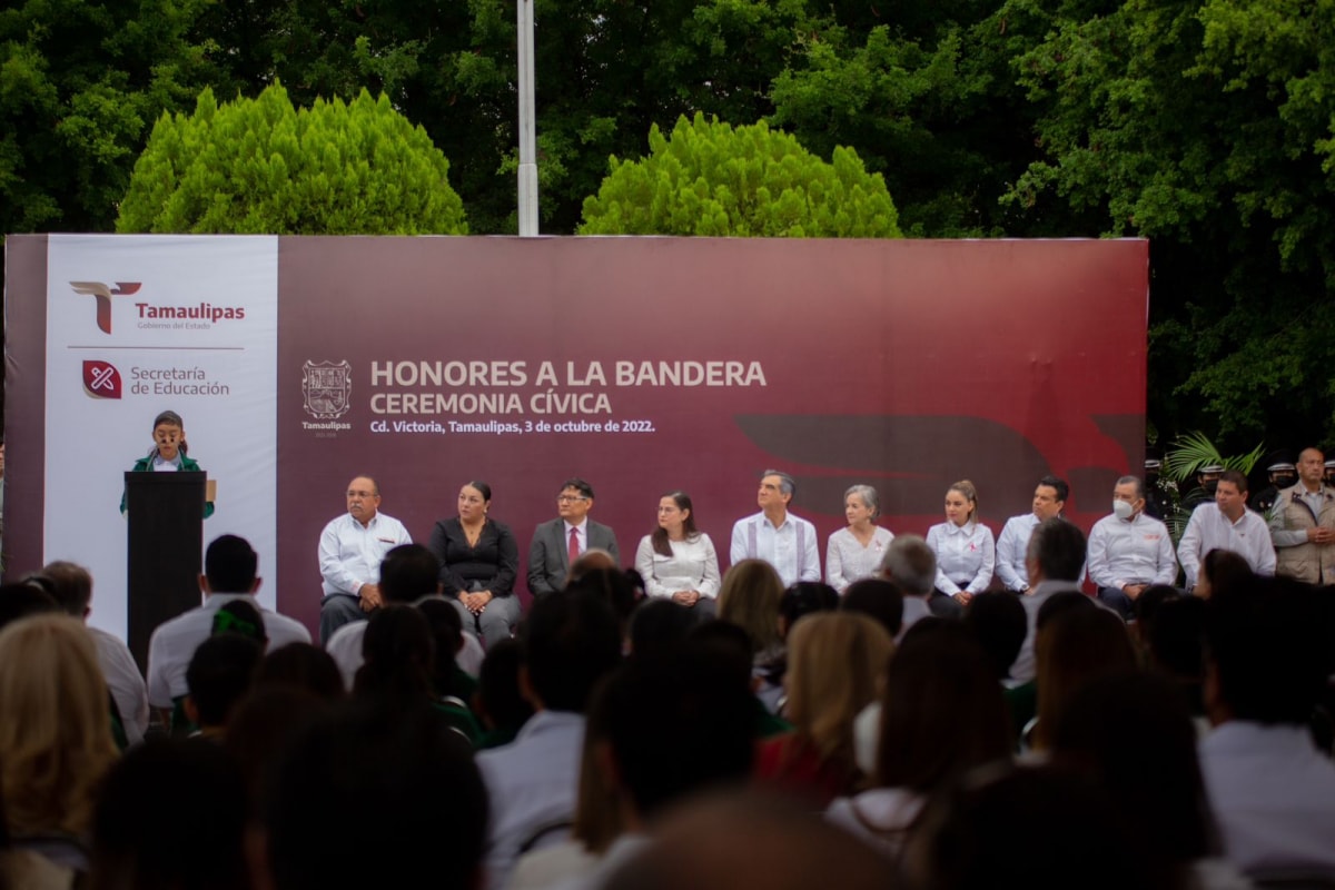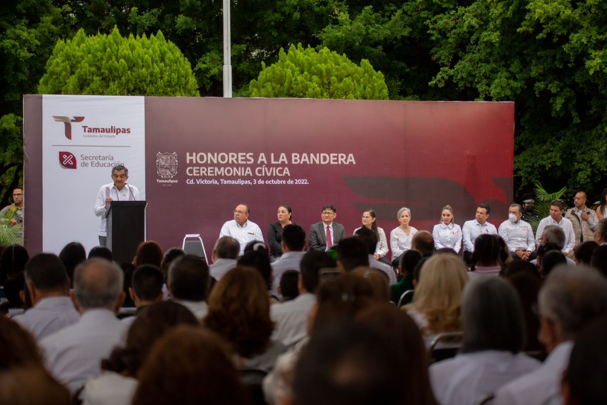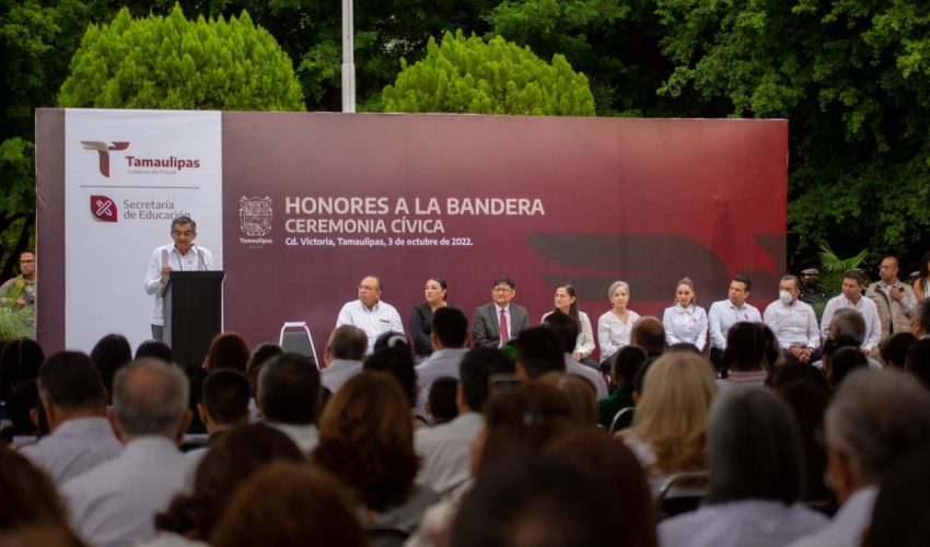 Gobernador de Tamaulipas preside honores en la Secretaría de Educación