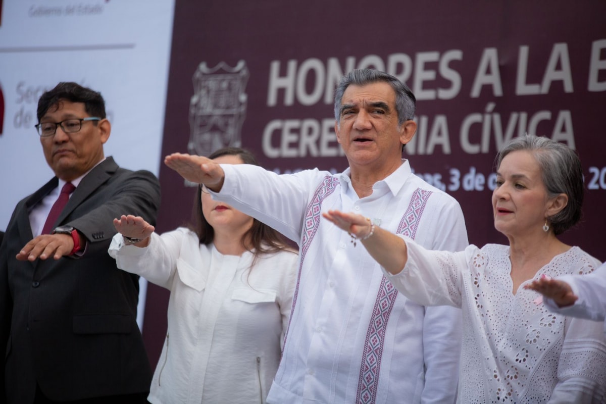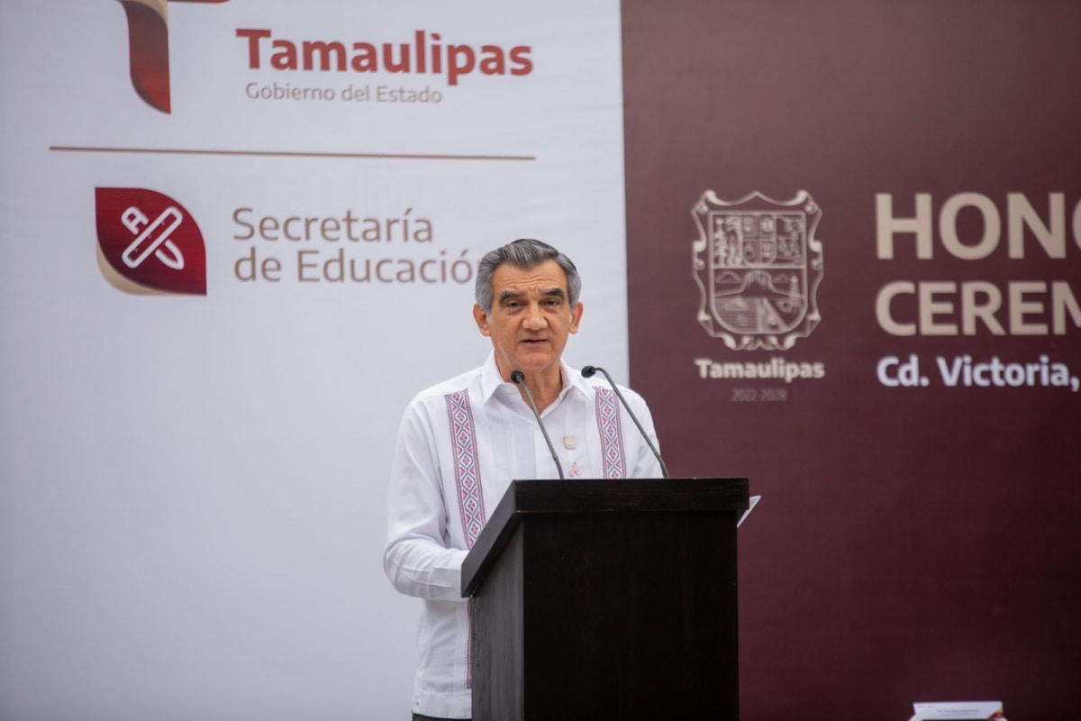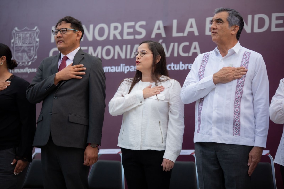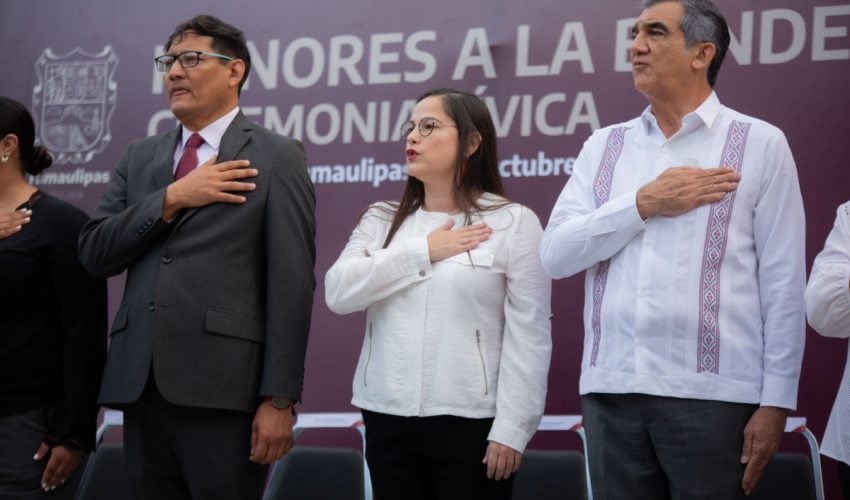 Gobernador de Tamaulipas preside honores en la Secretaría de Educación