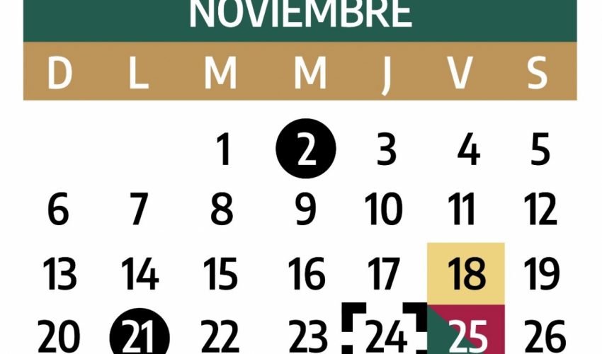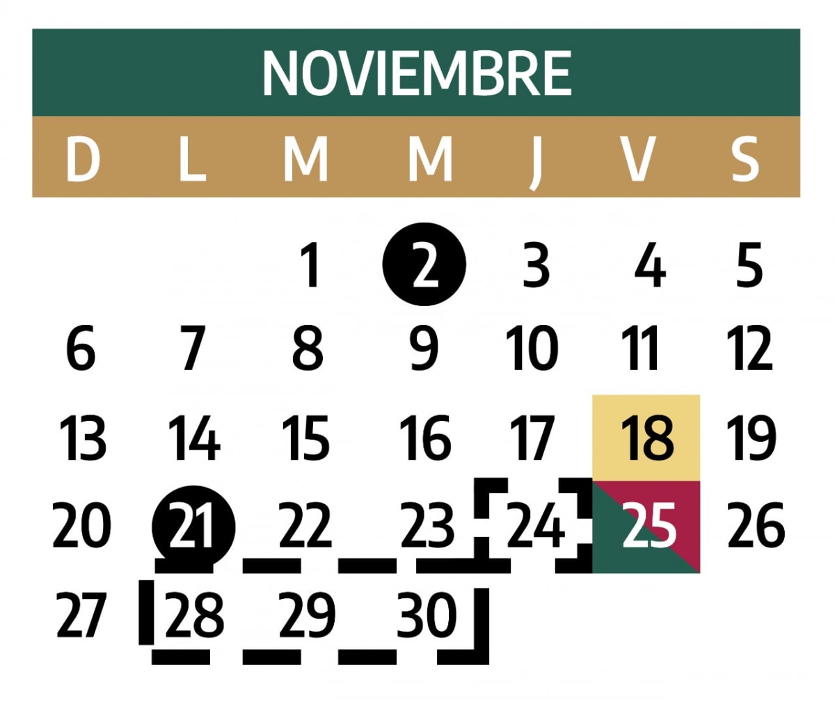 Dicho calendario marca la suspensión de labores docentes 2 y 21 de noviembre de 2022.