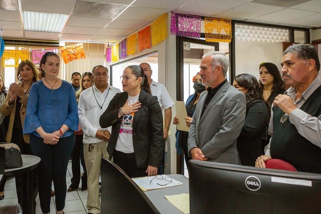 La creatividad estuvo presente en los Altares de Día de Muertos que la Dirección de Educación Secundaria instaló en el edificio central de la Secretaría de Educación, donde la titular de la dependencia hizo un recorrido felicitando al personal y recordando a sus seres queridos.