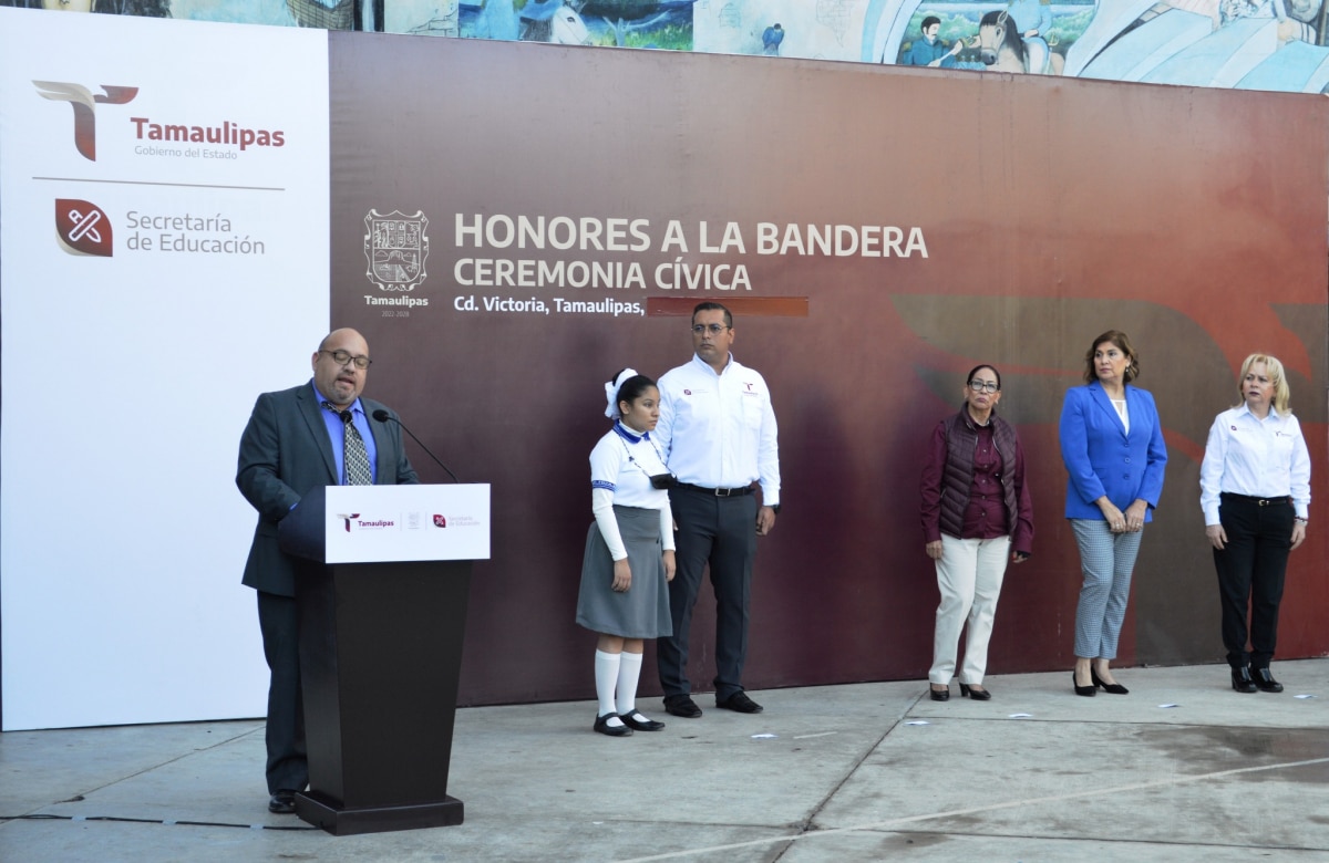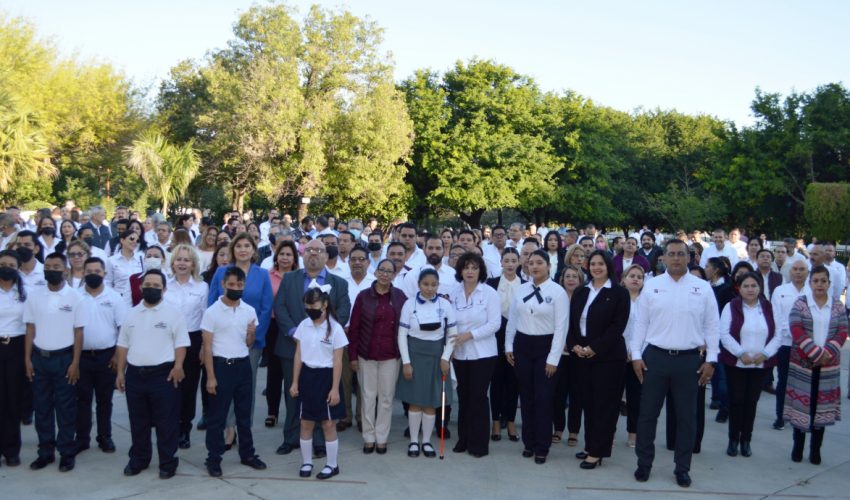 Al iniciar la semana con la Ceremonia Cívica de Honores a la Bandera, el Director de Centros Regionales de Desarrollo Educativo (CREDE) de la Unidad Ejecutiva SET, Hiram Peña Gómez refrendó el compromiso de fortalecer el sector educativo y señaló que los servidores públicos juegan un papel clave para lograr la reconstrucción e invitó a dar la mejor atención, “recordemos –dijo- que en el trato que demos a las personas radica la verdadera transformación, un trato con sentido humano que ponga en alto la confianza que ha depositado nuestro Gobernador para devolver la certeza en las instituciones”.