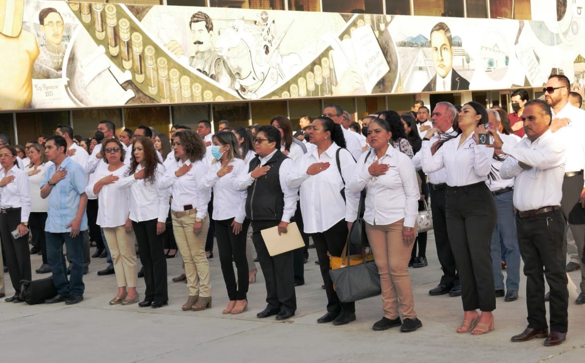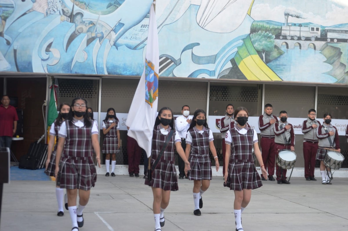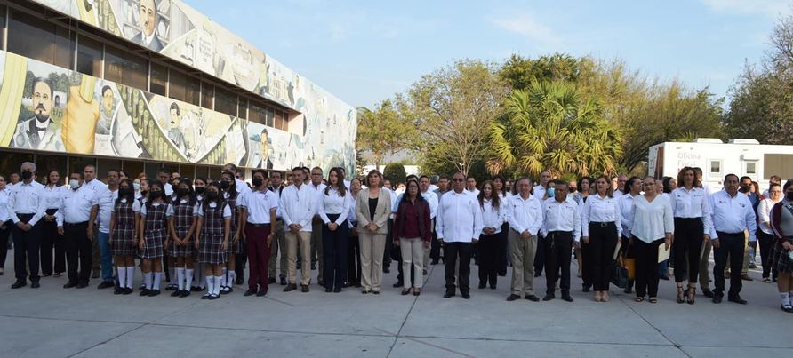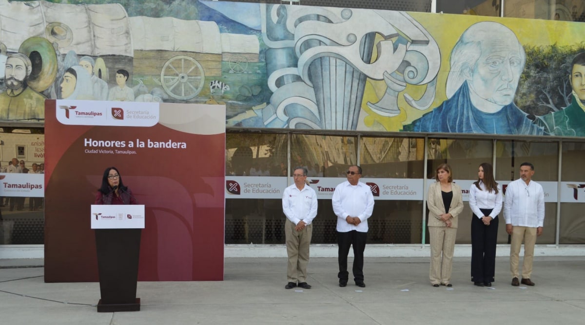 Hoy lunes 27 de febrero se inició la semana con la Ceremonia Cívica de Honores a nuestra Bandera, encabezada por la subsecretaria de Planeación, Ma. del Refugio Varela Reyes, acompañada de la estructura educativa y personal que labora en la Secretaría de Educación de Tamaulipas.