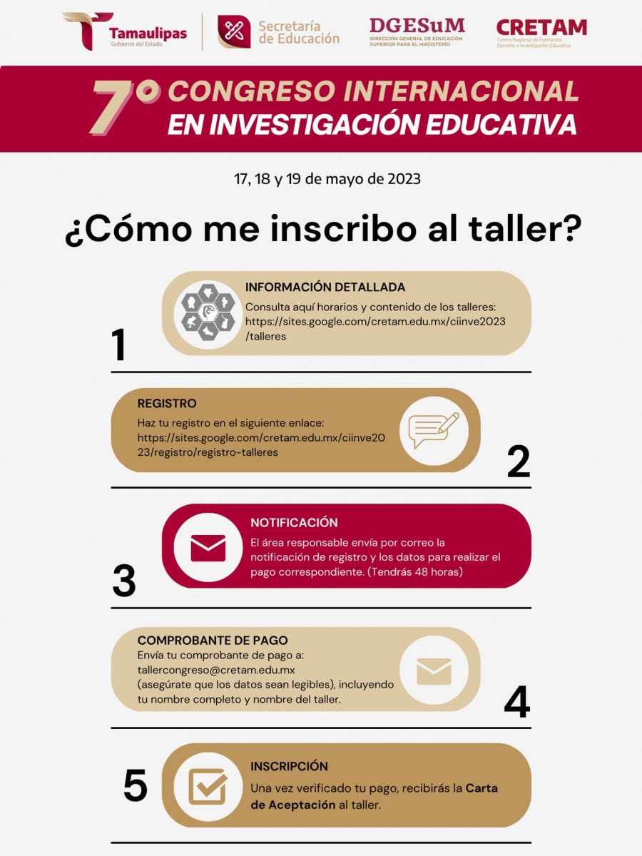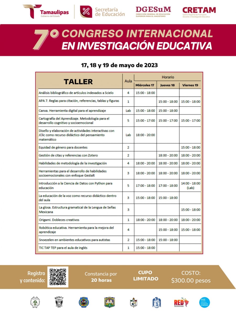 El Centro Regional de Formación Docente e Investigación Educativa (CRETAM) invita al 7° Congreso Internacional en Investigación Educativa los días 17, 18 y 19 de mayo con el desarrollo de conferencias magistrales, talleres cortos, mesas de trabajo (ponencias) y exposición de carteles.