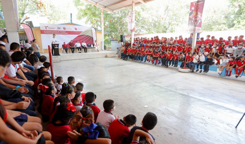 Para reafirmar los valores y la disciplina a través del estudio, el deporte y las actividades extraescolares donde participan estudiantes, maestros y padres de familia, el Sistema DIF Tamaulipas que preside la doctora María Santiago de Villarreal, sigue impulsando la Academia Social de Valores denominada “Formación para el Bienestar”.