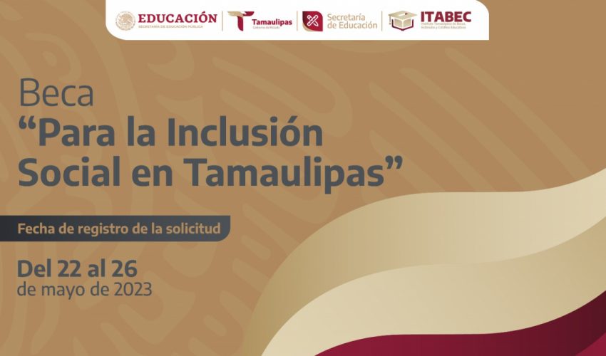 El Gobierno del Estado de Tamaulipas a través de la Secretaría de Educación y el ITABEC convoca a realizar el trámite de Beca “Para la Inclusión Social en Tamaulipas”, cuyas bases las puedes consultar en: https://www.tamaulipas.gob.mx/educacion/convocatoria/beca-inclusion/